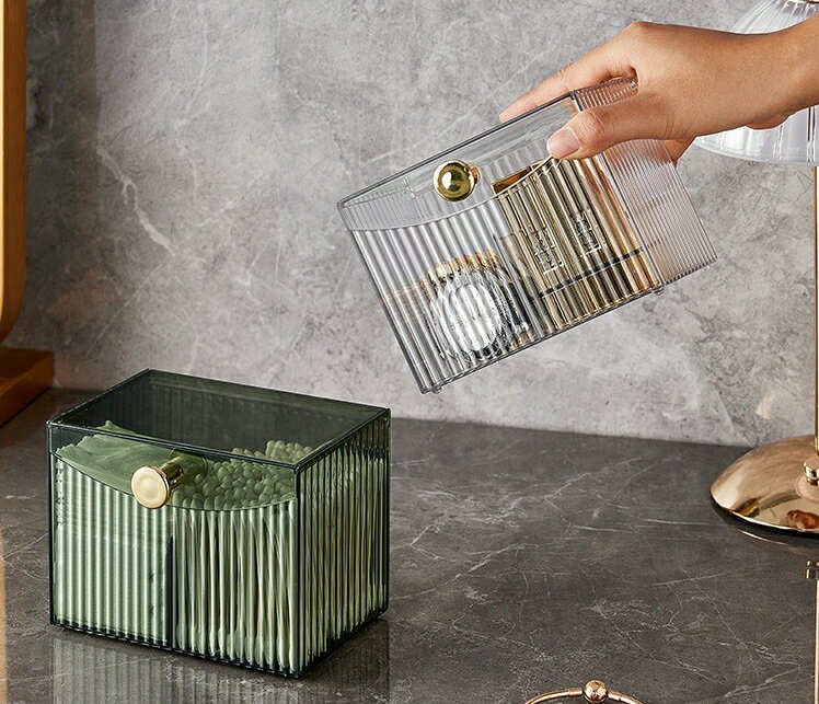 送料無料 コットンケース 綿棒ケース メイク道具入れ コットン入れ 綿棒入れ 収納ケース 小物入れ フェイスブラシ 文具 蓋付き 仕切り クリア 透明 グリーン 無地 シンプル おしゃれ かわいい 中身が見える コスメ用品