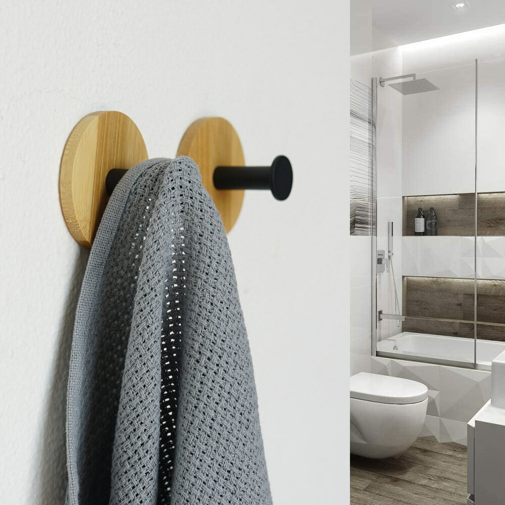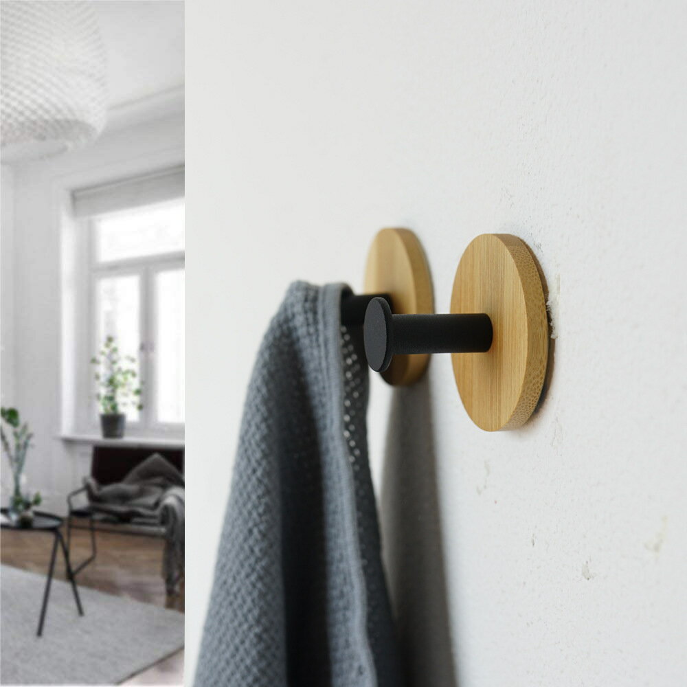 送料無料 ウォールフック 2個セット 木製 粘着シールフック インテリア 収納用品 シングルフック 粘着式 ラウンド スクエア 丸 四角 玄関 コート 帽子 寝室 小物 アクセサリー キッチン タオル おしゃれ シンプル 白 黒