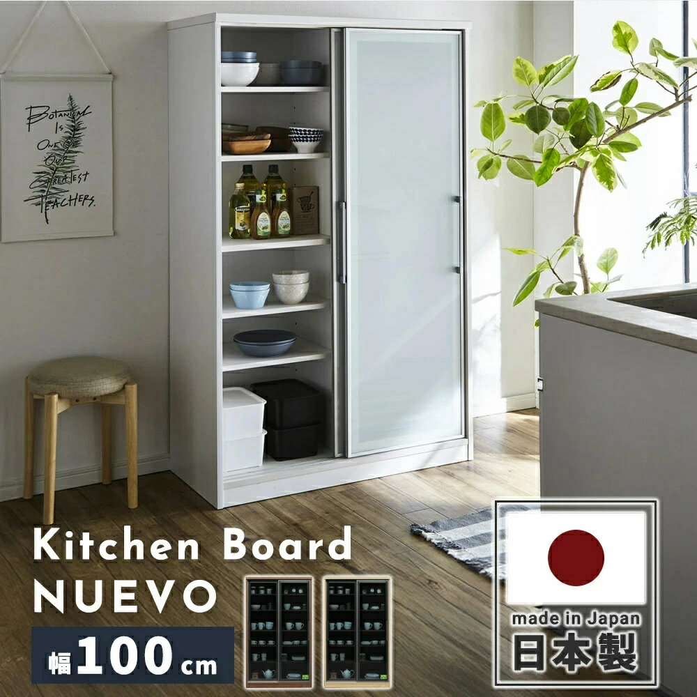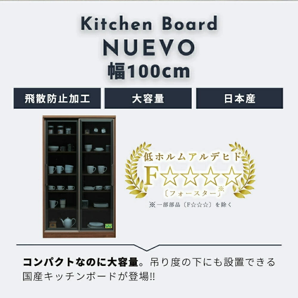 送料無料【開梱設置無料】当店オリジナルカラー 国産食器棚 国産100ダイニングボード 日本製 100キッチンボード キッチンボード スライド戸 コンパクト 大容量 機能的 可動棚 スモークガラス クリアガラス 飛散防止加工 F☆☆☆☆ フォース 100食器棚