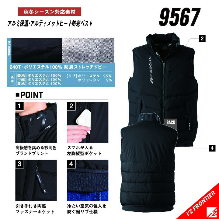 アイズフロンティア 最新 アイズフロンティア 秋冬 アイズフロンティア 防寒ベスト アイズフロンティア ベスト アイズフロンティア 裏アルミ 防寒ベスト 作業服 防寒着 アルミ保温 防寒着 裏アルミ 防寒服 裏アルミ 防寒着 保温 アイズフロンティア #9567