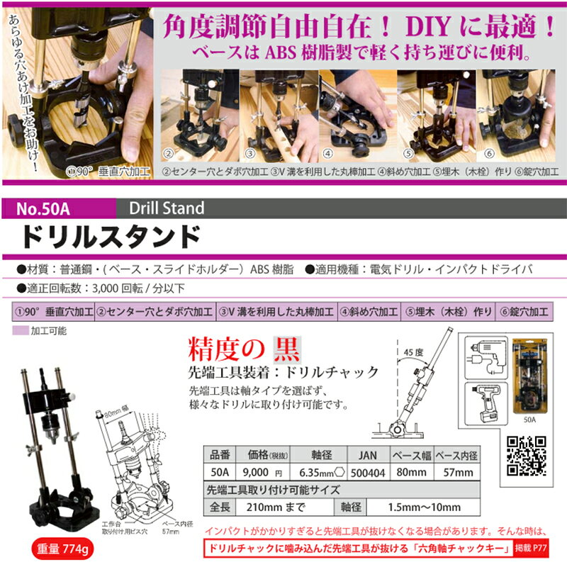 STAR-M 【ドリル補助具】No.50A ドリルスタンド 角度調節自由自在 DIYに最適 [ドリルチャック採用で穴あけ作業をサポート] スターエム 三冨D