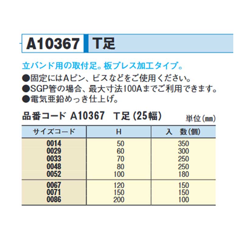 立配管金具 T足 25幅 60H 10個入 A10367 0029 配管支持金物 立バンド用 取付足 アカギ アMD