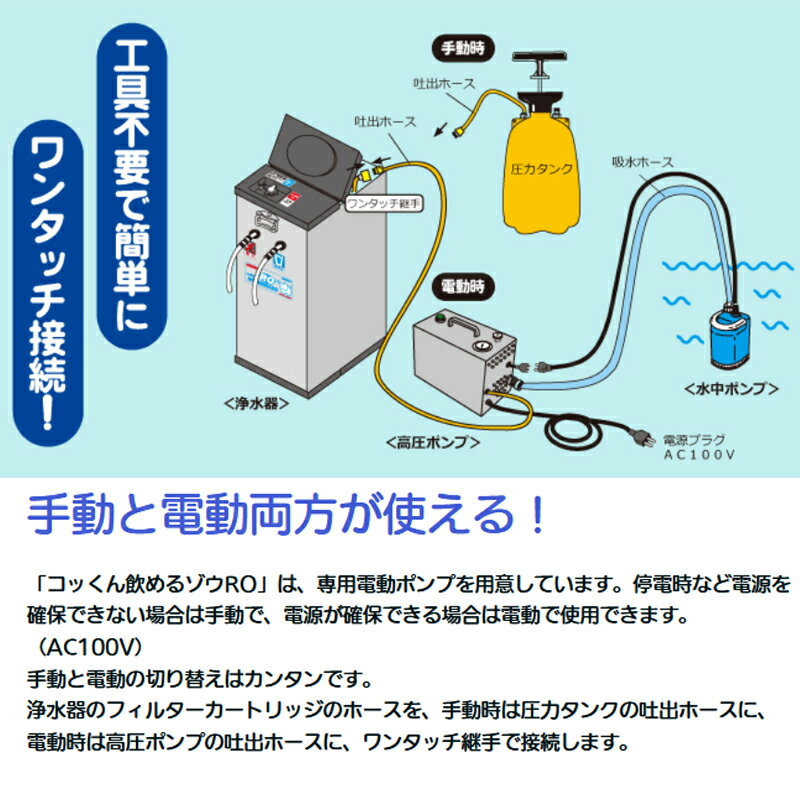 浄水器 飲めるゾウRO 手動/電動式両用 MJRO-3 逆浸透膜 52L/1h 非常時 災害時用 飲料水に変換 ミヤサカ工業 代引不可