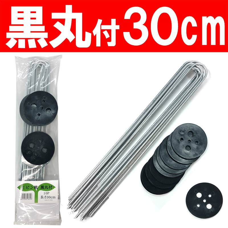 メール便 2袋 Uピン杭 黒丸 付 10本×2袋 、長さ 30cm 防草シート マルチシート 人工芝 の シートピン に シN DZ ネコポス