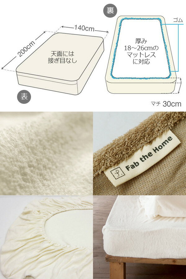 ベッドシーツ ボックスシーツ マットレスカバー タオル地 ゴム入りFab the Home Airy pileエアリーパイル ベッドシーツD ダブル [140×200cm] ファブザホーム おしゃれ 綿 パイル地 ◇洗濯OK ナチュラル シンプル 無地 おすすめ ふんわり