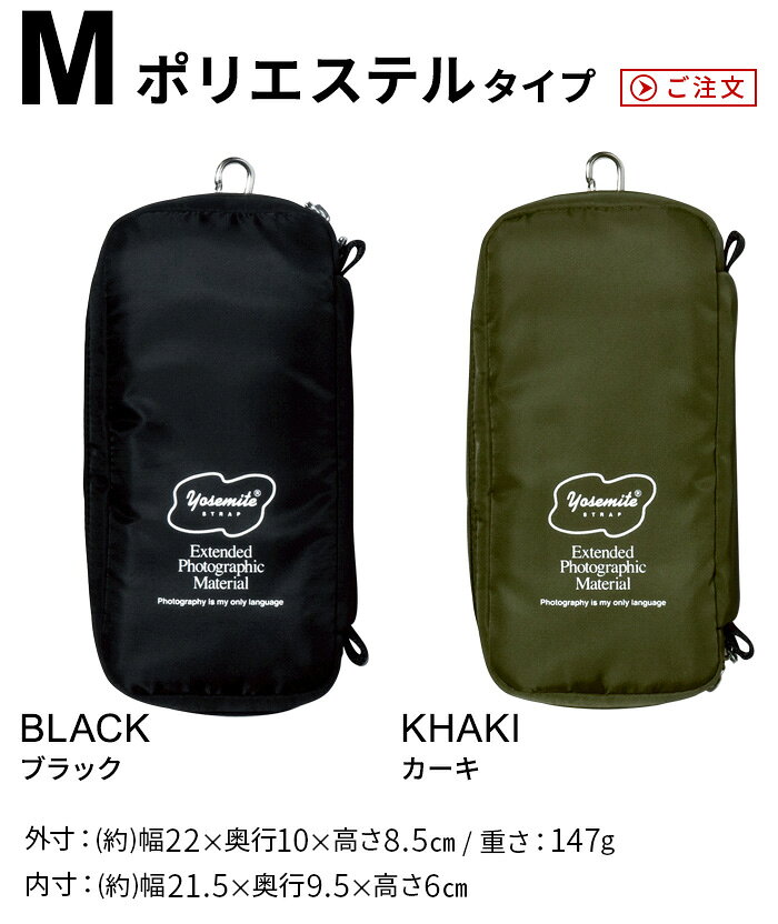 ギフト対応 ブランド YOSEMITE / ヨセミテ サイズ Sサイズ:(約)幅20×奥行8×高さ6.5cm内寸:(約)幅18×奥行7.5×高さ5cm Mサイズ:(約)幅22×奥行10×高さ8.5cm内寸:(約)幅21.5×奥行9.5×高さ6cm Lサイズ:(約)幅25×奥行12×高さ9cm内寸:(約)幅23.3×奥行11.5×高さ7.5cm 重 さ Sサイズ:約118gMサイズ:約147gLサイズ:約190g 素 材 ポリエステル100% 内 容 S・M・Lサイズのうちどれか1つ 備 考 着脱可能な仕切り内部にメッシュポケット付きナスカン付き ご注意 本製品は水洗い、クリーニング、アイロンは不可 本製品は強い衝撃などから製品を保護することはできません。 本製品の使用により製品の破損(内部データを含む)などの保障は一切いたしかねます。 防水機能はありませんので、水濡れなどはご注意ください。 濃色品は摩擦などにより色移りすることがあります。特に汗や雨などの水分がついた状態での摩擦や放置はご注意ください。また、色ムラ、シミ、変形、カビなどの原因になりますので、すぐに乾いた布で水分を取り、日陰で乾かしてください。 汚れた場合は乾いた柔らかい布で軽く拭くか、各素材専用のクリーナーなどでお手入れしてください。 ベンジン、除光液などの薬品をつけないでください。 長時間日光、ライトなどにあたると変色する場合があります。 本製品およびパッケージは、改良のため予告なく仕様、デザイン、素材などを変更する場合がございます。また、当製品の使用の際に生じた、人体・衣服・カメラ及び周辺機器・スマートフォン本体・データなどの損傷、落下による紛失等、一切の責任を負いかねますのでご了承ください。 パッケージ ビニール袋入り※仕様は予告なく変更する場合があります。 ■商品名 ヨセミテ マトリョーシカケース YOSEMITE MATRYOSHKA CASE ■特典送料無料 ■テイストシンプル おしゃれ かわいい カッコいい ■用途・シーン カメラバッグ 一眼レフ カメラ カメラケース カメラポーチ おしゃれ カメラ収納ケース ポーチ フィルム ミラーレス 保護 クッション性 ナスカン付き 男性 女性 ■JAN・品番 4582573838175 4582573838182 4582573838038 4582573838045 4582573838052 4582573838069 YSA-7054-1 YSA-7054-2 YSA-7055-1 YSA-7055-2 YSA-7056-1 YSA-7056-2スタイリッシュで機能的 カメラやレンズを守るガジェットケース YOSEMITEのカメラシリーズから、ちょっとしたお出掛けや旅行など、カメラやレンズ等の持ち運びに便利なガジェットケースの登場です。肉厚なクッション性と、耐久性に優れた素材で大切なカメラを守ります。日々のスタイルに自然に溶け込むミニマルなデザインがスタイリッシュ。ナスカン付きでバッグなどに掛けて持ち運びも可能で、機能面も充実しています。サイズはS、M、Lサイズの3種類からお選びいただけます。※X-PACタイプはM、Lサイズのみ