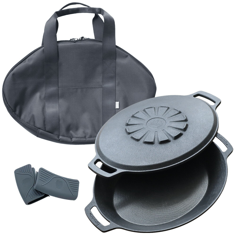 【3大特典付】メーカー保証有 JHQ × braaa マルチグリドルポット + 蓋 + ケース 4点 セット正規品 浅型 蓋 グリドル 鉄板 アウトドア プレート オーバル型 丸型鉄板 フライパン 鉄鍋 深型 ジェイエイチキュー ブラー◇IH 送料無料 P10倍