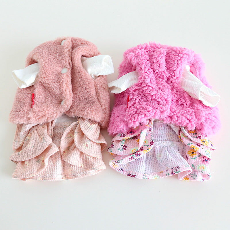 【全商品ポイント5倍】犬服 秋冬 ドッグウェア ワンピース ベスト 重ね着2枚セット ペットウエア フリフリスカート ドレス フリル 小型犬 猫 厚手 おしゃれ かわいい あったか