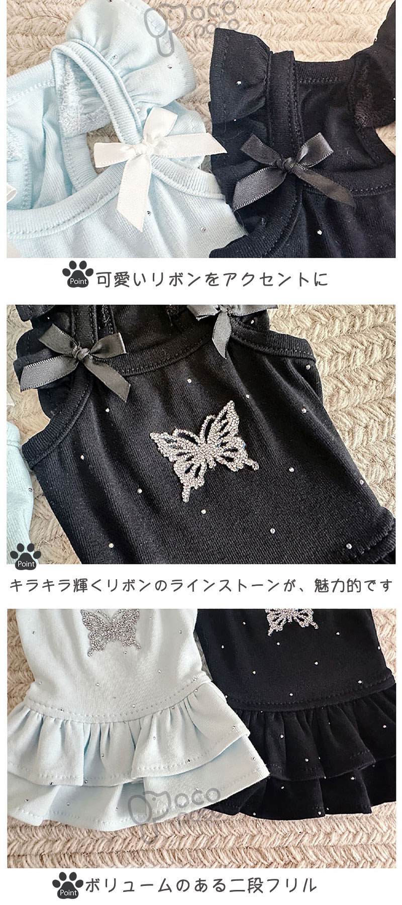 商品特徴■フリルとキラキラストーンが全体に散りばめられていて、まるでお姫様気分になれる一着です♪ ■伸縮性があるので、着せやすく、動きやすさも抜群♪ ■お散歩やお出かけの際に、インスタ映え間違いなしです♪ ■抜け毛防止効果もあり、猫ちゃんにもぴったり♪ ■3XSからXLまでのサイズ展開で、どんなペットにもフィットしますよ♪素材綿質 伸縮性あり生産国中国サイズ※胴回りはヌードサイズより余裕のあるサイズをご注文ください。 ※サイズ表をご参考下さい。 ※手作業のため、多少の誤差が生じる場合がございます。サイズ選びのポイント※両足洋服は胸囲を基準に選んでください。 ※繋ぎ洋服は背丈を基準に選んでください。 ※パンツ、スカートなどはウエストを基準に選んでください。 ※絶対条件:必ず愛犬の胴回りを超えるサイズを選んでください。 ※見た目:胴回りを超えた上で着丈に合わせる事が大事です。 ■※よく間違える事:サイズ表を見ず、いつもと同じサイズを買って合わなかったこと。 ■※体重でサイズを選ぶと、骨格の違いにより、よく間違えることがあります。必ずペットの胴囲と背丈をご確認してください。交換・返品■交換の際に往復送料お客様の御負担となります。ご希望の方必ず事前にお問い合わせフォームでお問合せください。 ※返品はお受け出来ません。注意事項■商品の撮影には最大限注意を払っておりますが、閲覧時のモニター環境によりましては実際の商品と若干違うお色味に映ることもございます。 ■画像は参考画像です。写真と実際の商品の色・型が多少異なる場合がございますので、予めご了承下さい。 ■海外輸入商品の為日本製品と異なり、縫製の甘い部分、糸の多少のほつれ、形のゆがみ、色むら等汚れある場合がございます、品質上、着用上に問題はございません。 ■生産・入荷時期により商品規格や洋服デザイン・仕様などで若干サイズが前後いたしますことをご了承くださいませ。 ■商品のサイズ交換のみ対応致します。交換の際に往復送料お客様の御負担となります。ご希望の方必ず事前にお問い合わせフォームでお問合せください。 ■返品の対応は受け付けておりません。あらかじめご了承ください。関連キーワードお洋服 おしゃれ ペット服 ペットグッズ ペット用品 かわいい 小型犬 わんちゃん ワンちゃん 猫服 ネコ カジュアル 軽量 脱着簡単 お散歩 お出かけ お揃い ペットベッド 通気性抜群 涼しい UVカット 贈り物 おくりもの お祝い シーズー ダックス トイプードル 柴犬 チワワ パグ ポメラニアン ヨークシャーテリア マルチーズ ボストンテリア犬 春夏服 夏用 四季通用 丈夫 安全 おすすめお問い合わせ少人数で運営のため、電話対応できない場合がございますので、なるべくお問い合わせフォームからお問い合わせ下さいませ。 『購入履歴→詳細→ショップへ関する問い合わせ』キラキラストーンがワンピース全体に散りばめられていて、インスタ映え間違いなし伸縮性があるので、着せやすく、動きやすさも抜群。愛犬ちゃんの胸囲と着丈、ご確認の上ご購入下さいませ。3XSからXLまでのサイズ展開で、どんなペットにもフィットしますよ! 関連商品はこちら【エントリーで最大100%ポイントバック...犬服 ワンピース キャミワンピース フリ...【エントリーで最大100%ポイントバック...