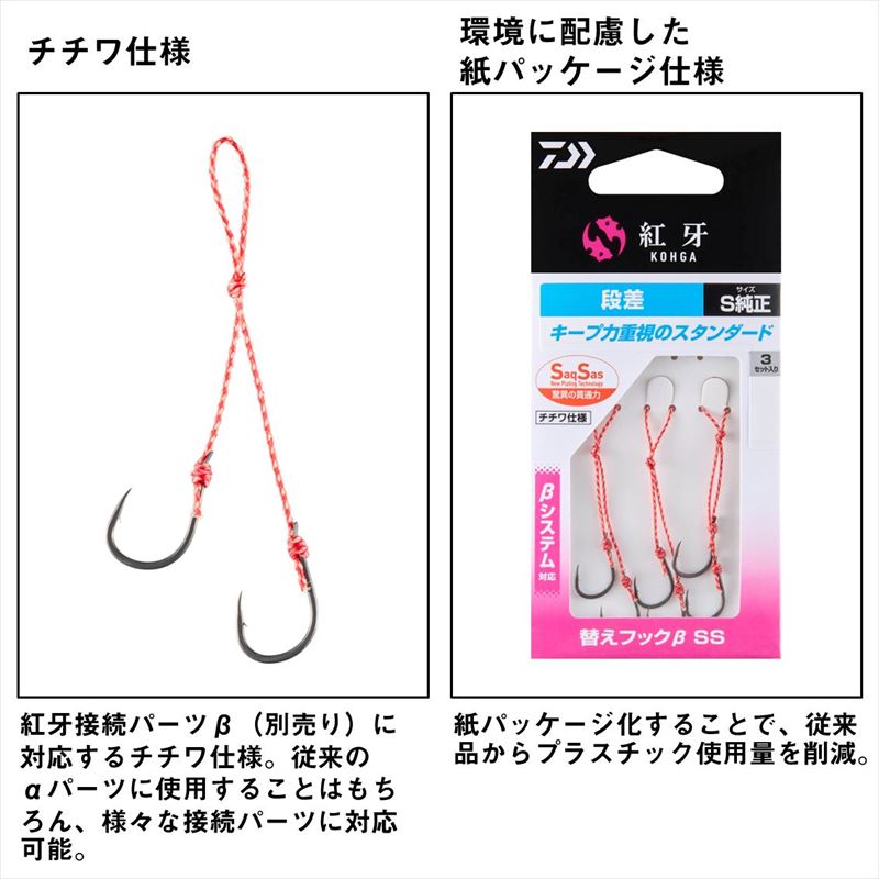 ●商品名に【同梱不可】【他商品同時注文不可】と記載されている商品は別倉庫から発送となるため同梱できません。システム上、同時注文が可能ですが、その際は勝手ながらキャンセルとさせて頂きます。キャンセルに伴い、各種キャンペーンの適用など取消となりますが、ご注文条件やポイントの補填・補償等は一切お受けできかねます。また、再度ご注文いただく際に完売となっている場合や、キャンペーン条件が異なる場合がございます。●掲載商品は複数サイトおよび実店舗で併売しています。ご注文タイミングにより欠品し、お取り寄せにお時間を頂く場合やお手配が出来ずにやむを得ずキャンセルさせて頂く場合がございます。●商品画像は代表画像です。仕様変更により商品スペックやパッケージなど変更となる場合がございます。仕様変更に伴う返品、商品交換の際の往復送料はお客様ご負担となります。●店舗都合・お客様都合に依らずご注文内容の修正やキャンセルを行った際に在庫なしとなる場合やポイント、クーポンなど各種キャンペーンが適用外となる場合がございます。大変恐縮ながらこのような場合でも補填などは出来かねますのでご了承下さい。紅牙のタイラバに標準搭載されている紅牙フックSSシリーズを使用した、全ての紅牙シリーズに対応するタイラバ用替えフック。多くの真鯛をキャッチしてきた実績のあるフックを使用しているので、初心者から玄人まで安心して使用できる。[KOHGA SPARE HOOK BETA SS][24new16]サイズ:段差 S純正フック:サクサス入数:3セット釣り方、フィールド:ソルトルアー(オフショア)代表対象魚:タイ(鯛)≪関連商品≫ 段差 S純正 段差 M 段差 L 中井段差 SSS純正 中井段差 SS 3本段差 SSS 3本段差 SS 3本段差 S 4本段差 SSS 4本段差 SS 4本段差 S ショートアシスト S純正 ショートアシスト M KP段差 SSS KP段差 SS KP段差 S TKM-16-08-09 BC-100010 紅牙