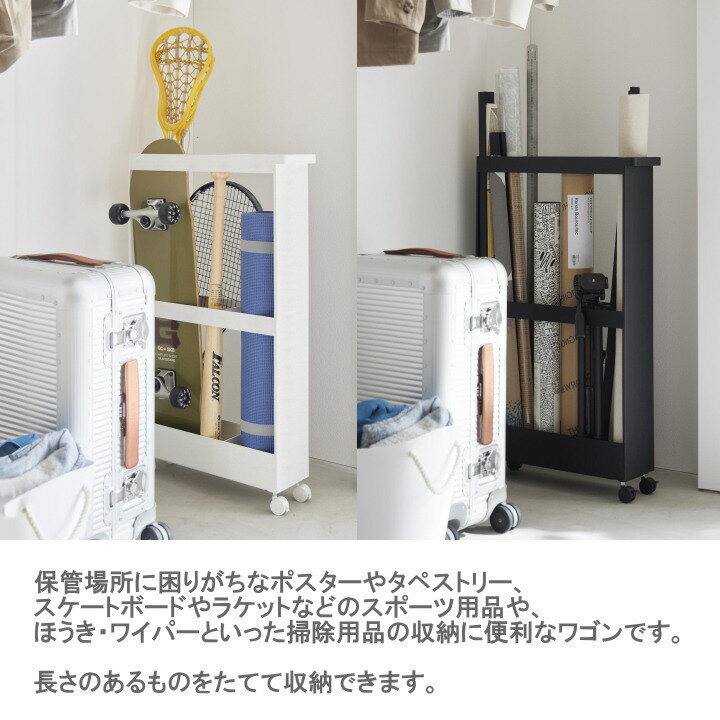 山崎実業 TOWER タワー キャスター付き 長物収納スリムワゴン 収納ラック 1713 1714 隙間収納 13cm 押し入れ収納 ポスター収納 スポーツ用品 掃除用具入れ スリム ワゴン 白 黒 隙間 便利 おしゃれ 隙間ラック ホワイト ブラック 公式 タワーシリーズ 【ポイント5倍】