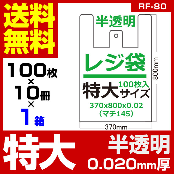 1枚あたり10.02円 レジ袋エコタイプ:特大サイズ/半透明/0.020mm厚 西日本80号/東日本80号 10冊入 1000枚入