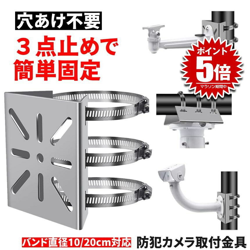 Gavit 防犯カメラ 取付金具 ブラケット ポール ハウジング スタンド 監視カメラ 円柱 角柱 屋外 穴あけ不要 ステンレスバンド 20cm 2セット✅【防犯カメラ取り付け用のブラケットセット】防犯カメラを設置したい場合に活用できる防犯カメラ取付用のブラケットスタンドセット。防犯対策用として取り入れて身の回りの防犯環境を整えてみてはいかがでしょうか。家と家族と財産を守るグッズです✅【屋外・屋内など様々な箇所に設置できるブラケット】こちらの防犯カメラ取り付け用ブラケットは、付属のステンレスバンドで円柱・角柱などの支柱に防犯カメラをしっかり固定する設計となっております。ポールやコンクリート柱、木柱はもちろん、雨樋や格子・金網フェンスなど、ある程度の強度がある場所であれば「どこにでも」、「簡単に」取り付け可能です。防犯カメラ、街灯、看板、ミラー、ウォルボックス ・ プラボックス・ソーラーパネル・ソーラーライト等を、取付面に穴を開けることなく取り付けることができます。✅【簡単設置・穴あけ不要♬】支柱にステンレスバンドを巻き付けて設置するタイプの防犯カメラ取り付け用ブラケットとなっておりますので、構造体に穴をあけたりビス止めしたりすることなく取り入れやすい。設置箇所に穴を開けたくない場合におすすめの固定金具です。✅【使い道が広がる2点セット】複数箇所に設置したい場合に便利です。予備として確保することもでき、事務所・店舗・倉庫・飲食店・駐車場・マンションなどの法人様のご利用にもおススメです。当社【Gavit】の防犯ステッカーも併せてご利用くださいませ。✅【セット内容】カメラブラケット2点セット サイズ:約107×107×42mm ステンレスバンド4本 屋外での使用にも耐久性のある取付金具です。 防犯カメラ取り付けるビスは付属しておりません。 一部の防犯カメラには取付穴が対応していない場合がございますので、ご注意くださいませ。 モニターの環境により、色の見え方に若干差が生じる場合があります。