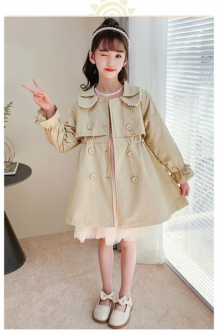 子供 コート 春秋 トレンチコート 長袖 無地 おしゃれ 子供用 女の子 おしゃれ 上品 子供服 お出かけ 通園 可愛い 女児 キッズ ピンク ベージュ 洋装 110-160 TZ-980 海外通販
