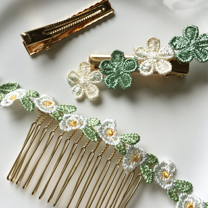 【50cm】小花モチーフレース(グリーン系2タイプ)緑 白 グリーン ホワイト ブレード レース リボン 軽い 薄い イヤリング ハンドメイド 手芸 アクセサリー 材料 素材 パーツ 手芸 バレッタ カチューシャ チャーム ニューボーンフォト 撮影小物ヘアゴム 商用