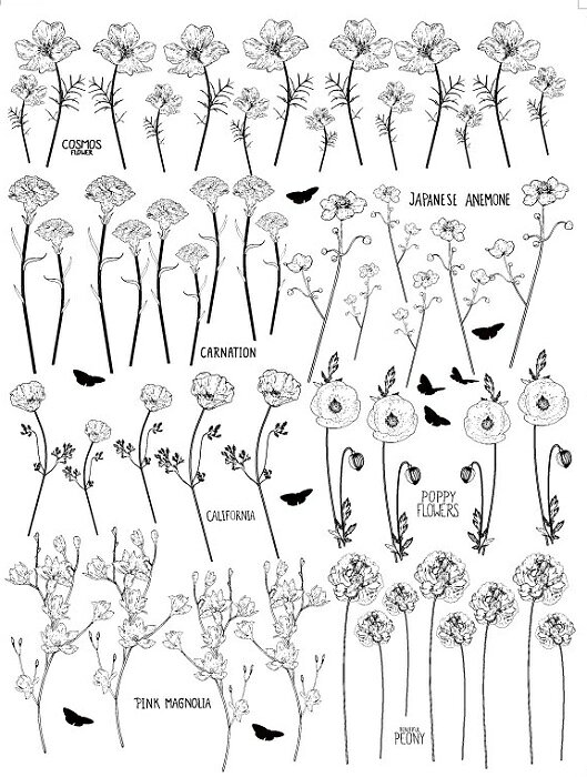 ポーセラーツ 転写紙 【白磁用】BLOOM転写紙 ブルーム ブラック ポーセラーツ ポーセリンアート用 かわいい オシャレ ポーセリン ポーセラーツ転写紙 転写紙 花転写紙 オリジナル 転写紙