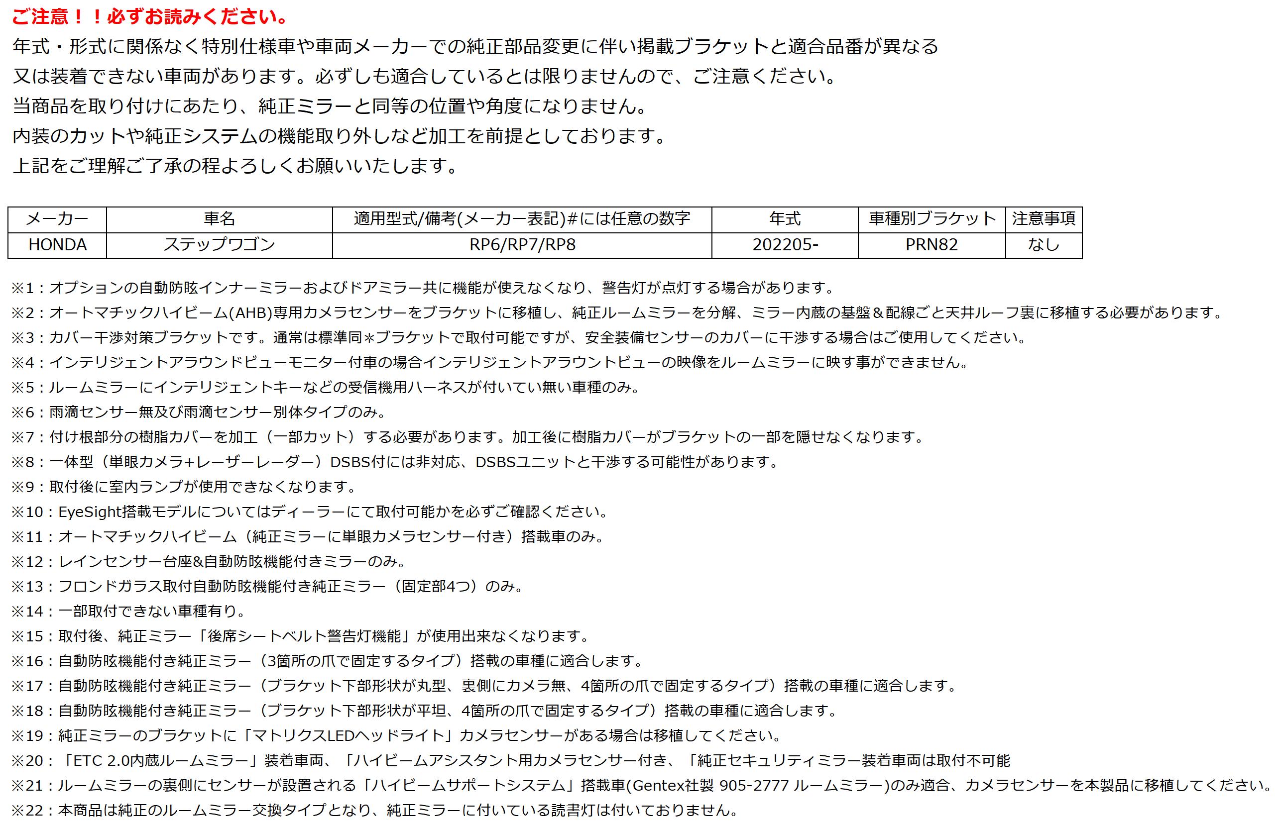 年式・形式に関係なく特別仕様車や車両メーカーでの純正部品変更に伴い掲載ブラケットと適合品番が異なる 又は装着できない車両があります。必ずしも適合しているとは限りませんので、ご注意ください。 当商品を取り付けにあたり、純正ミラーと同等の位置や角度になりません。 内装のカットや純正システムの機能取り外しなど加工を前提としております。 上記をご理解ご了承の程よろしくお願いいたします。関連商品はこちら【19%OFFクーポンで42,833円+P2倍 5/23 ...【19%OFFクーポンで42,914円+P2倍 5/23 ...【20%OFFクーポンで34,304円+P2倍 5/23 ...【20%OFFクーポン+ポイント10倍 最強翌...【20%OFFクーポン+ポイント10倍 最強翌...【20%OFFクーポン+ポイント10倍 最強翌...【13,000円OFFクーポン+ポイント10倍 最...【25%OFFクーポン+ポイント10倍 最強翌...【20%OFFクーポン+ポイント10倍 最強翌...