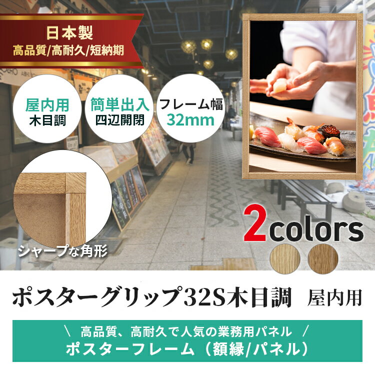 【 送料無料 】B2 ポスターフレーム 木目 515×728mm 屋内 ポスターグリップ 32S b2サイズ アルミ 高耐久 フレーム ポスター アート インテリア 額 額縁 看板 広告 店舗 飲食店 メニュー パネル 展示 絵画 写真 イーゼル 枠