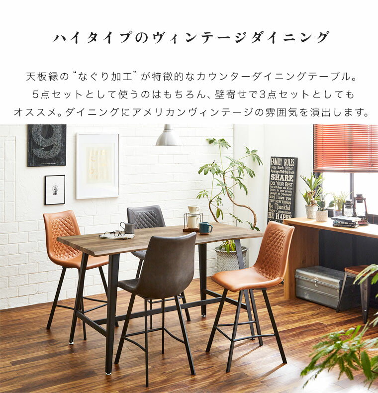 ダイニングテーブル ハイタイプ カウンターテーブル 160cm 4人掛け 2人掛け おしゃれ ヴィンテージ インダストリアル 男前 レトロ 木製 カウンター テーブル 単品 ダイニング 食卓 スチール なぐり加工 机 ブラウン 木目 DT6015A