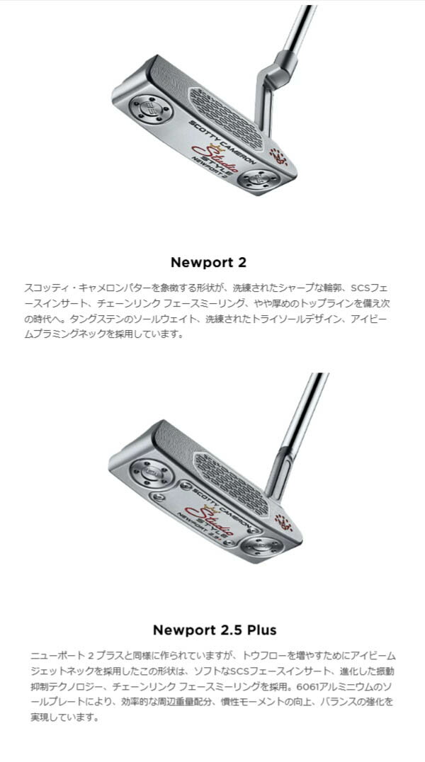 Scotty Cameron Studio Style スコッティの伝説的なクラフトマンシップと素材、ミーリング、パフォーマンス、テクノロジーに対する革新的なアプローチによるデザインの融合から生み出された12モデルは、新たな付加価値、過去モデルの「ゼロからの」再設計、そして時代を超越したクラシックさを持ち合わせ、打音、打感、パフォーマンスを新たな高みへと導きながら、現代のプレーヤーのニーズに合わせて大幅にアップデートされています。 GSSインサートを搭載した初代スタジオスタイルの20周年を記念して誕生した2025年モデルのスタジオスタイルでは、チェーンリンクフェースミーリング テクノロジーを採用した、よりソフトなスタジオカーボンスチール(SCS)フェースインサートを全モデルに搭載していますScotty Cameron Studio Style スコッティの伝説的なクラフトマンシップと素材、ミーリング、パフォーマンス、テクノロジーに対する革新的なアプローチによるデザインの融合から生み出された12モデルは、新たな付加価値、過去モデルの「ゼロからの」再設計、そして時代を超越したクラシックさを持ち合わせ、打音、打感、パフォーマンスを新たな高みへと導きながら、現代のプレーヤーのニーズに合わせて大幅にアップデートされています。 GSSインサートを搭載した初代スタジオスタイルの20周年を記念して誕生した2025年モデルのスタジオスタイルでは、チェーンリンクフェースミーリング テクノロジーを採用した、よりソフトなスタジオカーボンスチール(SCS)フェースインサートを全モデルに搭載しています スタジオカーボンスチール (SCS) フェースインサート さまざまなテストを経て数多くの金属から選ばれたカーボンスチールをフェースインサートに採用。すべてのモデルで心地いい打音と優れた打感を提供します。さらに、耐久性を高め、腐食を防ぐために、新たなニッケルメッキプロセスを施すことで、ソフトなフィーリングの維持にも貢献しています。 チェーンリンク フェースミーリング テクノロジー パッティングにおける心地いい打音、好ましい転がり、コントロールされたスピードの理想的な組み合わせを生み出す、新たなミーリングパターンのフェースが誕生。スピードが重要なショートからミドルのパットにおいて、より自信が持てる積極的なストロークを可能にします。 ハイコントラスト アライメント スクエアバックやファストバックなどのコンパクトマレットモデルでは、アルマイト加工された黒色のアルミニウムを埋め込んだツートンの直線的なアライメントにより、ターゲットラインに対してよりスクエアに構えやすくヘッドをデザイン。アドレス時のスクエアなセットアップを可能にする改良されたソールデザインとシャープで直線的な特徴によって、アライメントが強化されています。
