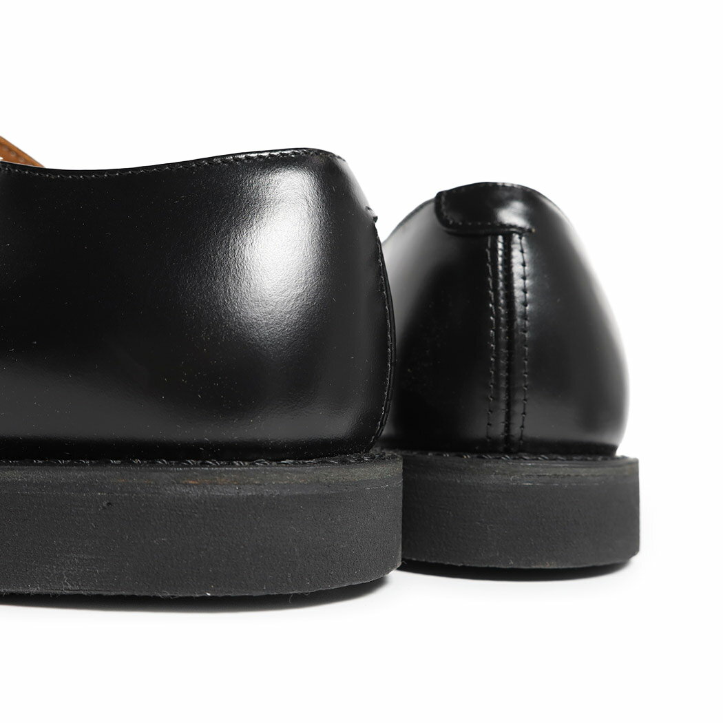 |RED WING レッドウィング ポストマン オックスフォード ブーツ POSTMAN OXFORD BLACK CHAPPARRAL ( USA製 黒 ブラック レザー D 101 ) Brand RED WING Model POSTMAN OXFORD Color BLACK CHAPPARRAL FABRIC レザー Description of item アメリカを代表するワークブーツブランド"RED WING (レッドウィング)"から、ブランドを代表するクラシックモデル遂に入荷しました。 説明不要の認知を誇る歴史あるブランドで、今もなおワークスタイルを貫きブーツシーンを席巻しています。 レッドウィング社がポストマンとポリスマンの為に発売した#101は、グリップが良くクッション性の高いウエッジ型のラバーソールと、光沢のある黒いコレクテッド・グレインレザーが特徴の完成度の高いシューズ。 5年後、1959年には、チャッカ丈の#9196が追加され、ラインナップも拡がった。翌年、1960年に、#101のアッパーのデザインが改良され、一枚の革を贅沢に使った、流麗なデザインとなった。 このマイナーチェンジでその評価を更に高めた#101は、アメリカ全土のポストマン達に愛用され、売り上げも急速に伸び始めた。 60年代、70年代と、売り上げは更に拡大し、レッド・ウィング社のベストセラーのひとつとなった。デザインと高い機能性を兼ね備えたレッド・ウィング#101、#9196は、毎日大量の手紙が納められた大きな鞄を抱えながら歩いて手紙を配達する郵便局員にとって何よりも頼もしいものであったに違いない。 長年愛され続けている歴史あるブランドの入荷となりますので、ぜひこの機会をお見逃しなく。 Size ・普段履かれているサイズより0.5cm大きいサイズを選ばれると少し余裕を持って履く事ができ、普段履かれているサイズですとジャストで履くことができます。