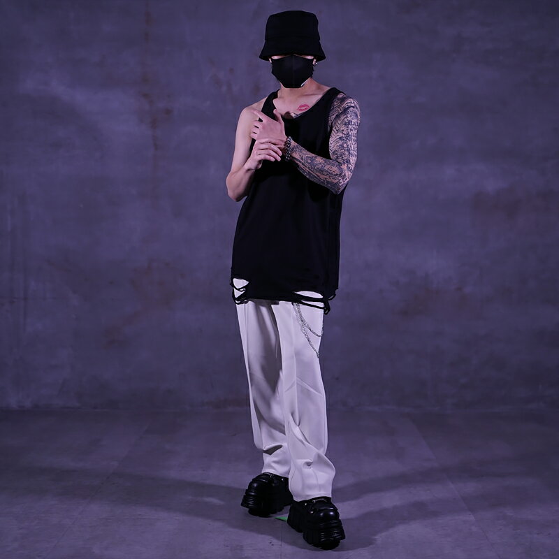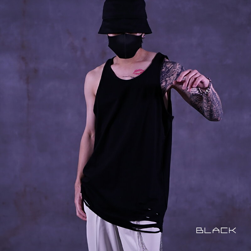 V系 タンクトップ メンズ ヴィジュアル系 ファッション ロング丈 ダメージ ホスト ホスト系 インナー 大きいサイズ オーバーサイズ 黒 ブラック モード系 白 ホワイト 無地 Tシャツ 大きめ 大きいサイズ ユニセックス レディース パンク ロック オシャレ 原宿系 オズ Oz