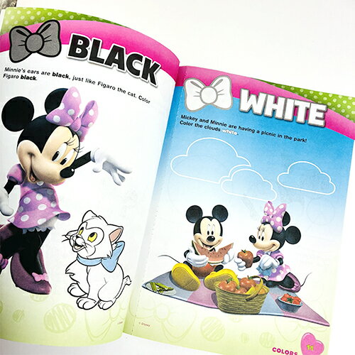 ミニーといっしょにベーシックな色と形が学べるワークブックです。 すべて英語で書かれているので、小さなお子さまのはじめての英語のお勉強にもおすすめです。 切り取り線付きで切り離して使えます。 シール2シート入り。 ■サイズ:約H27.4×W20cm ■ページ数:32ページ + シール2シート ■made in U.S.A ※背表紙の端等が破れている場合があります。インクうつりや裏面のインクにじみがあります。輸入商品の特性として良品販売しています。 ※海外輸入商品です。「輸入商品について」を必ずご一読ください。 その他ぬりえはこちら>>ぬりえ・アクティビティーブック セットでクレヨン・色鉛筆等もどうぞ♪>>クレヨン・色鉛筆・カラーペン