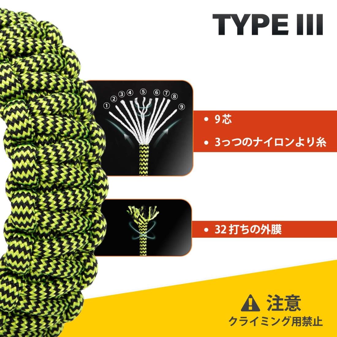 ▶【高品質&材質】本製品の内芯は100%ナイロンで作られています。直径:4mm、長さ:50m。良い材質なので、「詰まってる」感が有り、質感がいい。マジックテープが付属していますので、収納便利です。▶【280KGまで耐荷重】本品は内芯9芯で(1芯は3条細い芯があります)、3本のナイロン糸をより合わせて作ったインナーコードを9本束にして耐摩耗性の外皮で覆っています。耐荷重約280KG。▶【良い耐久性】普及している7芯パラコードよりもっとしっかりしています。耐摩耗性と引っ張り強度を増強します。耐紫外線、色あせない、アウトドアスポーツに最適な商品です。▶【色々な利用場所】キャンプ、釣り、テント用ロープ、靴紐、物干し、徒歩旅行、および他の野外活動利用でき、手作り、ブレスレット、アクセサリー製作、ナイ フの柄に巻きつけたり使用されます。▶【注意と について】ロッククライミング&プロ登山 用ロープとして使用できない。緊急にパラコードで体重を支える場合は、折り返して3~4本を束ねて利用してください。 (9芯50mパラコードはボビン型ですので、マジックテープが付属しません)説明 Brotree パラコード 4mm マジックテープ付 ナイロン ロープ 9芯 テント ロープ 30m / 50m 1このマジックバンド付けのパラコードは多用途で、アウトドア用品、固定用、服を掛けること、ワイヤー、コード、充電ケーブルなどの整理できます。 2パラコードを切断した場合の末端処理は、ライターなどであぶって溶かし固めてください。 3:自在金具と利用:テントの設営はもちろんん、ブレスレット、アクセサリー製作として活躍する優れ物です。パラコードを使用したアクセサリー製作、ナイ フの柄に巻きつけたり使用されます。 4:バックル付きのマジックテープ仕様固定ベルトですので、手軽に結束、固定できます。ケーブルをまとめた後、マジックタイの穴を通したら1回にケーブルの真ん中に回って貼ります。 5:【ご注意】:緊急にパラコードで体重を支える場合は、折り返して4~6本を束ねて利用してください。ただしこの場合もパラコードの本来の利用範囲以外の行為ですので、あくまで自分で責任を負担します。 仕様: 梱包サイズ:30*5.5*12cm パラコード材質:表地:ポリエステル+内芯:ナイロン マジックテープ:ナイロン 付属品: パラコード本体1本 マジックテープ1本