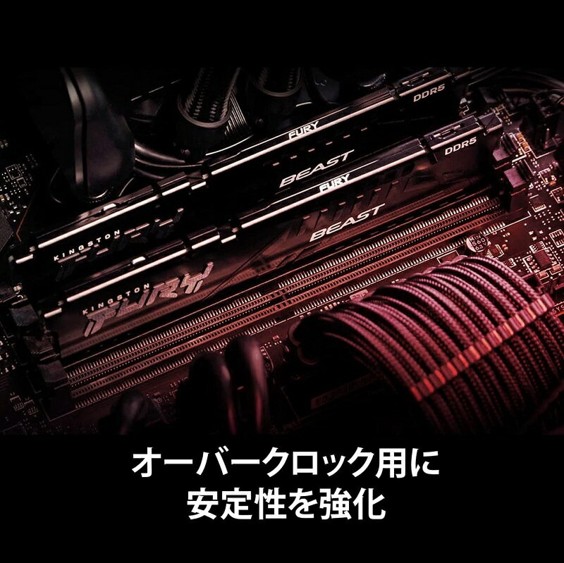 【特約】 本製品は原則としてご注文確定後のキャンセル・返品・別製品との交換は不可(不具合時の修理交換のみ可)です。購入前に仕様、対応システム、納期、ご希望商品かどうかをご確認ください。※クレジットカード・電子マネー・後払い決済の場合はご注文日(与信確認時)に、銀行振込・コンビニ決済の場合は入金時にご注文が確定いたします。(代引決済不可) メーカー取り寄せ品。ご注文確定後、通常2〜4週間で発送致します。ただしメーカー在庫切れの場合は納期に時間が掛かる場合がございますので、詳しい納期は都度お問い合わせ下さい。※ 1件の注文番号内に発送時期の異なる商品が混在する場合は、すべての商品が揃い次第の発送となります。個別発送はできません。個別発送をご希望の場合は商品ごとに注文を完了してください。 本ページの製品は容量:32GB(16GB×2枚) / 速度:5600MHz / レイテンシ:CL40 / 密度:16Gbitです。 Kingston FURY Beast DDR5 メモリ ※メモリの対応状況はKingstonホームページでご確認下さい。 (株)プリンストンはキングストンテクノロジーの正規代理店です。キングストンテクノロジーは、多数の専用メモリモジュールを設計・製造し、メモリモジュール・メーカーとして徹底した品質管理体制を誇ります。その優れた製品は世界で販売され、メモリのサードパーティーメーカーとして全米No.1のシェアを獲得しています。 ◆ご注意下さい◆キングストン製品は海外からの取り寄せのため、為替や製造コストの変動により、日本での販売価格が変動する場合があります。ご注文時と納品時で販売価格が変更となる場合もございますが、販売価格はご注文が確定した時点での価格が適用されるものとします。価格改定などによりご注文時点の価格と当店の表示価格に差異が生じても、弊社は差額の補填義務を負いませんのでご了承下さい。 関連製品Kingston ゲーミングメモリ【特約】 本製品は原則としてご注文確定後のキャンセル・返品・別製品との交換は不可(不具合時の修理交換のみ可)です。購入前に仕様、対応システム、納期、ご希望商品かどうかをご確認ください。※クレジットカード・電子マネー・後払い決済の場合はご注文日(与信確認時)に、銀行振込・コンビニ決済の場合は入金時にご注文が確定いたします。(代引決済不可) メーカー取り寄せ品。ご注文確定後、通常2〜4週間で発送致します。ただしメーカー在庫切れの場合は納期に時間が掛かる場合がございますので、詳しい納期は都度お問い合わせ下さい。※ 1件の注文番号内に発送時期の異なる商品が混在する場合は、すべての商品が揃い次第の発送となります。個別発送はできません。個別発送をご希望の場合は商品ごとに注文を完了してください。 本ページの製品は容量:32GB(16GB×2枚) / 速度:5600MHz / レイテンシ:CL40 / 密度:16Gbitです。 Kingston FURY Beast DDR5 メモリ Kingston FURY™ Beast DDR5 メモリで、次世代ゲーミングプラットフォーム向けの最新の最先端技術を活用できます。速度、容量、信頼性をさらに強化した DDR5 には、多くの拡張機能が搭載されています。たとえば超高速でも安定性を向上するオンダイ ECC(ODECC)や、効率を向上するデュアル 32 ビットサブチャネル、もっとも必要な個所に電力を供給するオンモジュール電源管理集積回路(PMIC)などがあります。 DDR5 メモリではバンクが 16 から 32 と倍増し、バースト長も 8 から 16 に倍増して速度が大幅に向上したため、ゲーミングエクスペリエンスや全体的なシステムアプリケーションのパフォーマンスがレベルアップします。 もっとも過酷な設定でゲーミングの限界を超えようとする場合も、4K 以上のライブストリーミングをする場合も、大容量のアニメーションや 3D レンダリングを行う場合も、Kingston FURY Beast DDR5 メモリは、スタイリッシュに決めながらパフォーマンスを解放し、必要なレベルアップを行います。 また、速度とタイミングのカスタマイズ可能な 2 つのプロファイルを含む新しいオーバークロック仕様の Intel® XMP 3.0 を活用しています。 特長 ・4800MHz 以上にパフォーマンスを向上・オーバークロック用に安定性向上・効率向上・Intel® XMP 3.0 対応および認証取得・世界大手マザーボードメーカーから認定取得※1・Plug N Play、4800MHz※2・薄型ヒートスプレッダ 主な特徴 起動時の速度パフォーマンス向上 4800MHz 以上の高速な DDR5 は、DDR4 に比べ速度が 50% 向上しています。 オーバークロック用に安定性向上 オンダイ ECC(ODECC)は、限界を超えながら究極のパフォーマンスを持続し、データ完全性の維持に役立ちます。 効率向上 バンクとバースト長を倍増し、 2 個の独立した 32 ビットサブチャネルを搭載した DDR5 は、最新のゲーム、プログラム、要件の厳しいアプリケーションなどで並外れたデータ処理能力を発揮します。 Intel® XMP 3.0 対応および認証取得 プログラム可能な PMIC を活用したオーバークロックのパフォーマンスのための高度な事前最適化済みのタイミング、速度、電圧と、