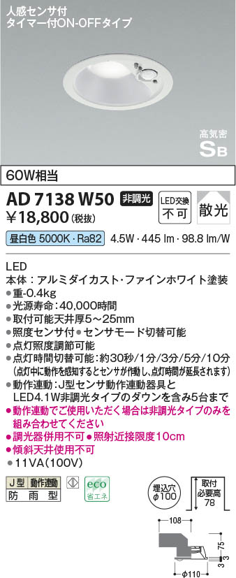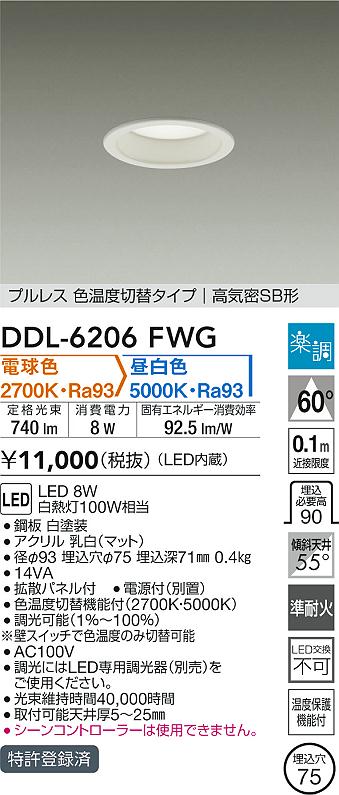 大光電機 ダウンライト DDL6206FWG 2色温度切替調光 Φ75 白熱灯100W相当 工事必要