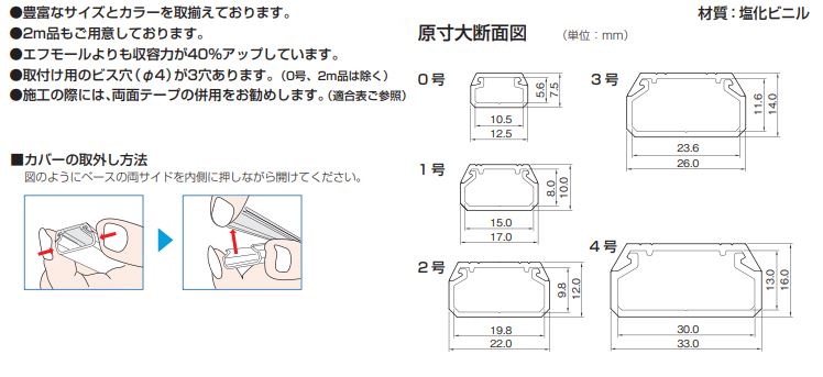 商品特長 ●豊富なサイズとカラーを取揃えております。 ●2m品もご用意しております。 ●エフモールよりも収容力が40%アップしています。 ●取付け用のビス穴(φ4)が3穴あります。 ●施工の際には、両面テープの併用をお勧めします。(適合表ご参照) 材質:塩化ビニル セット数:25個セット カラー:ホワイト/SFM3202、ミルキー/SFM3203、ブラウン/SFM3206 【法人様限定商品】 お届け先名について お届け先に必ず法人名をご記入ください。(会社名・SHOP名・施設名・屋号等) 個人事業主様も屋号などをご記入ください。 日時、時間指定について 配達日時指定、時間帯指定はご利用いただけません。 配送状況は発送完了メールに記載のお荷物番号でご確認ください。 送料について 離島、沖縄宛の配送料金は、別途お見積りとなります。 北海道宛の荷物について 通常よりも、お届けまでに若干お時間がかかる場合がございます。 注文確定後、発送予定日をお知らせいたします。 商品の同梱について 弊社取扱いの法人様限定マサル工業商品であれば同梱が可能です。 それ以外の商品との同梱は不可となります。 何卒ご了承いただけますようお願い申し上げます。▼水曜・木曜限定!当店全品ポイント5倍アップ中!!▼ ▼人気商品もお値下げ中!お得にお買い求めください!▼ ▼売り切れ御免の在庫処分セール!▼ この商品のバリエーション 1号 2m 2号 2m 3号 2m 1号 1m 2号 1m 3号 1m 4号 1m 0号 2m 0号 1m