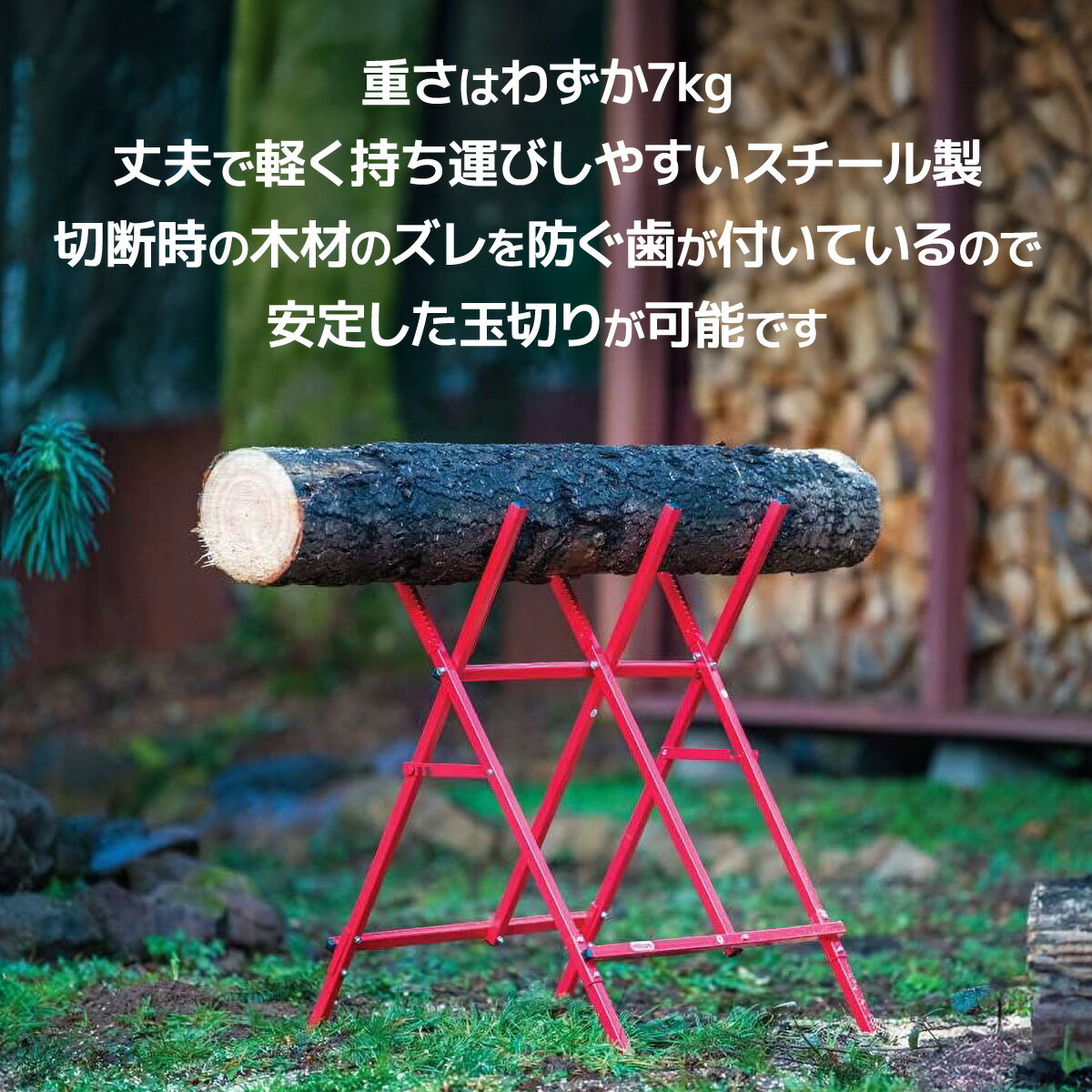 商品詳細 特徴 丈夫で軽く、持ち運びが楽なスチール製の玉切り用ソーホースです 丸太を高い位置で固定できるので、玉切りの際に腰を痛めません 切断時の木材のズレを防ぐ歯が付いていて、安定した玉切りが可能です 幅は最大27cmまで調整可能、わずか7kgで軽量 表面に錆や腐食に強い塗装を施し、耐久性に優れた頑丈なスチール製 組み立てはとても簡単です(スパナ/レンチは付属しません) メーカー OREGON(オレゴン) 品名 ソーホース 玉切り台 584145 サイズ 長さ72 x 幅68 x 高さ90 cm 重さ 7 kg 備考