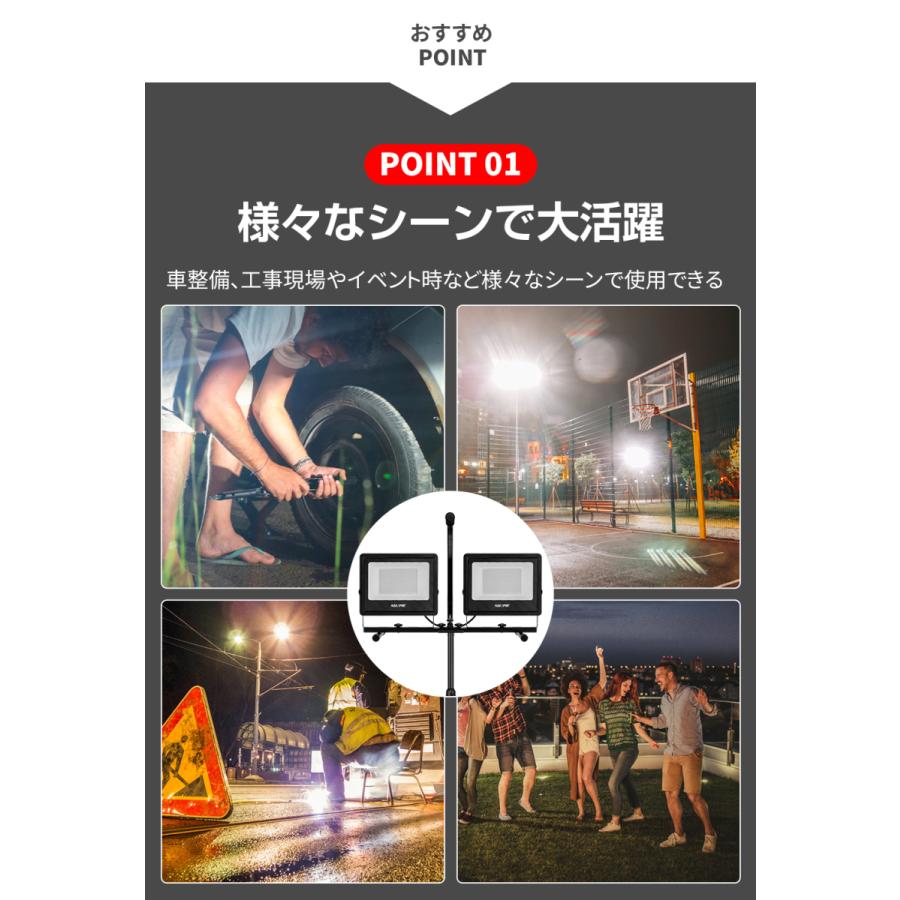 商品仕様 商品名:LED投光器 明るさ:16000lm(8000lm×2) 発光色:昼光色のみ/昼光色・昼白色・電球色切替 昼光色(6200K)、昼白色(5000K)、電球色(2700K) 配光:約170° 光源:LEDチョップ搭載 消費電力:104W(52W×2) 入力電圧:AC90V?260V 周波数:50/60Hz 保護等級:IP65 長寿命:60000時間以上 重量:約5kg 本体材質:アルミ、強化ガラス 商品サイズ(cm):高さ約61~192 電源コード:約2.5m 保証:二年保証(初期不良:7日) 特徴 【幅広い使用範囲】投光器の使用範囲は幅広い、様々なシーンで大活躍します!車庫、庭、公園、夜釣り、トンネル、作業灯、駐車場灯、看板灯、街灯、町内防犯灯、舞台照明、BBQ、ガソリンスタンド、工事現場、夜間イベントなどに適用します。 【高輝度・長寿命】明るさ16000lmでまるで昼間のような感じられる。空間をしっかり照らし、夜間や暗所での作業をサポートする。 長寿命で約15年取り替え不要。白熱球に比べて虫が寄りにくく、熱くなりにくい。 【防塵防水】IP65規格で粉塵が内部に侵入せず、いかなる方向からの水の噴流を受ける規格!(※浸水禁止。)様々な場面で活躍できます! セット内容 LED投光器×2 ブラケット×1 ハンドル×1 三脚スタンド×1 ネジ×5 説明書×1 注意事項 ※画面上と実物では多少色具合質感が異なって見える場合もございます。 ※万が一、初期不良などが発生した場合は、どうぞお気軽にお問い合わせください。弊社が速やかに対応させていただきます。 検索用キーワード 検索:LED投光器 作業灯 ledワークライト 104W 16000LM 三脚付き LEDスタンドライト 昼光色 昼白色 電球色 三色切替 防水 防塵 IP65 集魚灯 防犯灯 屋外 駐車場 建築・工事現場 照明 防災グッズ 2灯 照明 超強力 led投光器 三脚式 スタンド式 LEDスタンドライト投光器 led投光器 屋外 防水 スタンド式商品仕様 商品名:LED投光器 明るさ:16000lm(8000lm×2) 発光色:昼光色のみ/昼光色・昼白色・電球色切替 昼光色(6200K)、昼白色(5000K)、電球色(2700K) 配光:約170° 光源:LEDチョップ搭載 消費電力:104W(52W×2) 入力電圧:AC90V?260V 周波数:50/60Hz 保護等級:IP65 長寿命:60000時間以上 重量:約5kg 本体材質:アルミ、強化ガラス 商品サイズ(cm):高さ約61~192 電源コード:約2.5m 保証:二年保証(初期不良:7日) 特徴 【幅広い使用範囲】投光器の使用範囲は幅広い、様々なシーンで大活躍します!車庫、庭、公園、夜釣り、トンネル、作業灯、駐車場灯、看板灯、街灯、町内防犯灯、舞台照明、BBQ、ガソリンスタンド、工事現場、夜間イベントなどに適用します。 【高輝度・長寿命】明るさ16000lmでまるで昼間のような感じられる。空間をしっかり照らし、夜間や暗所での作業をサポートする。 長寿命で約15年取り替え不要。白熱球に比べて虫が寄りにくく、熱くなりにくい。 【防塵防水】IP65規格で粉塵が内部に侵入せず、いかなる方向からの水の噴流を受ける規格!(※浸水禁止。)様々な場面で活躍できます! セット内容 LED投光器×2 ブラケット×1 ハンドル×1 三脚スタンド×1 ネジ×5 説明書×1 注意事項 ※画面上と実物では多少色具合質感が異なって見える場合もございます。 ※万が一、初期不良などが発生した場合は、どうぞお気軽にお問い合わせください。弊社が速やかに対応させていただきます。 検索用キーワード 検索:LED投光器 作業灯 ledワークライト 104W 16000LM 三脚付き LEDスタンドライト 昼光色 昼白色 電球色 三色切替 防水 防塵 IP65 集魚灯 防犯灯 屋外 駐車場 建築・工事現場 照明 防災グッズ 2灯 照明 超強力 led投光器 三脚式 スタンド式 LEDスタンドライト投光器 led投光器 屋外 防水 スタンド式