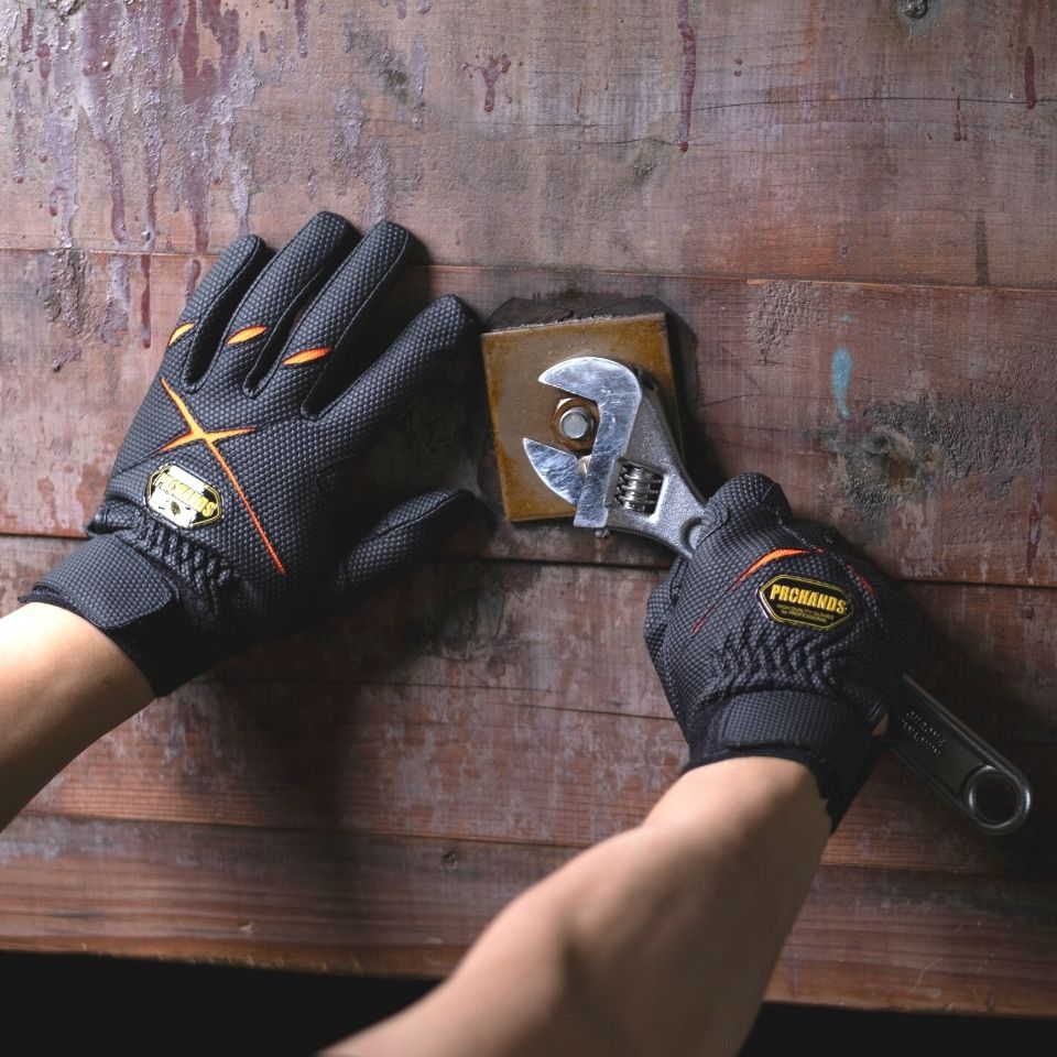 ★ 商品説明(PROHANDS/プロハンズ)★商品名◆PU−605 オレンジ◆特徴用途 高グリップが効いた商品の為、非常に握りやすく滑りません。手の甲と指の関節部分に伸縮性・速乾性に優れたハンズドライニットを使用し カットして入れ込む事で曲げ伸ばしの作業性を上げ 装着感をUPさせるだけでなく、見た目のデザイン性にもこだわりました。 摩耗しやすい手の平と指先すべてにPUエンボスでW補強し長く使える様にしています。 耐水・高グリップ機能もあり洗えて清潔。速乾性もあり。 全天候型でオールマイティーに活躍してくれること間違いなしの手袋になっています。 ※スライドカット部分がブラック『PU-605 ブラック』という品番もございます。 別ページにて購入できます。サイズ素材機能など■サイズ:M/L/LL■色:ブラック(本体)×オレンジ(カット部分) (カット部分がブラック『PU-605 ブラック』は別ページにて購入下さい)■素材:合成皮革(フィット感とグリップ力に優れており、 抜群の伸縮性がある。柔らかく適度な撥水性・通気性もある合成素材。水にぬれてもすぐに乾きます。) ■手の平・指先補強:合成皮革■手の甲:メッシュニット ■ファンクション(機能):ハンズドライ・洗える・指先補強 ★色ちがい商品★ PU-605 ブラック(カット部分がブラック)