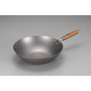 サイズ(目安) φ27.0cm×深さ8.0cm×板厚1.2mm柄の長さ17.0cm、木部10.5cm 重量(目安) 920g 対応熱源 ガス サイズ選びの目安 3~4人用 スタッフのおすすめポイント 商品選びに迷ったら、こちら。 サイズ選びの目安や、熱源にあった品などをお探し頂けます。 使用上の注意 空焚き作業済み品は、ビニール袋に入った状態でのお届けとなります。空焚き作業済みの商品にはサビ防止のため食用油が塗ってあります。この油は中性洗剤で洗い落とせますが、鍋を油が溶ける程度に温めて(軽く油をとばす気持ちで)から洗うと、簡単に取り除くことができます。 目安として、煙が出てから一呼吸置いて、火を止めるくらいの時間です。 冷めたら中性洗剤を使ってタワシなどでガシガシ洗い、お湯で洗い流して下さい。 そのままご使用いただいても害はございませんので、あまり神経質にならなくても大丈夫です。 ■ご確認ください ●ご使用の前に同梱している取扱説明書をよくお読みのうえ、正しく使用してください。 ●打出製法で作られているため、製造過程上出来る傷がみられたり、ふちが波打っている場合がございます。また溶接時に生じる周りの色の違いや黒皮の剥離などは、ご使用には問題はございませんので、ご安心ください(写真1、2)。 ●錆止めとして食用油を薄く塗布してありますが、ホコリ除けとしてかぶせてあるビニール袋に接している部分とそうでない部分で油の変色・酸化が見られます。こちらは削って取り除く必要はございません。 取り扱い説明書の通り油ならしをしてお使いいただけます(写真3)。 ●家庭用コンロの場合、柄の重みにより傾く場合がございますが、問題なくお使いいただけます(写真4)。 ●鉄鍋のお手入れと再生方法について、詳しくはこちらをご覧ください。 ●ひとつひとつ手作りのため、サイズ及び重量に若干の誤差が生じる場合がございます。 ●生産工程上にできた小さなキズがありますが、品質上問題ありません。 ●使用後は洗剤を使わずにお湯または水のみで洗って下さい。その後、火であぶり薄く油を塗っておいて下さい。 鍋に調理した料理を長時間入れたままにしておくと鍋の腐食の原因となりますのでご注意ください。 ●ご使用の前に同梱している取扱説明書をよくお読みのうえ、正しく使用してください。※商品に同封されているリーフレットには「打出し中華鍋」と記載されています。(画像参照) ※ラッピングをご希望の方はこちらをご覧ください。