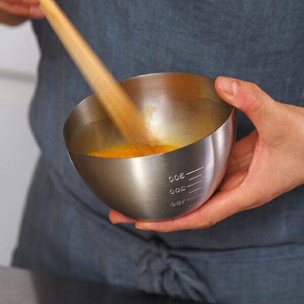 サイズ(目安) W11.8×D11.4×H6.5cm 容量(目安) 0.52l 重量(目安) 170g 材質 18-8ステンレス 使用区分 電子レンジ ×、食洗機 ○、オーブン × 原産国 日本 ■ご確認ください ●ご使用の前に同梱している取扱説明書をよくお読みのうえ、正しく使用してください。 ●小さな傷や跡、黒ずみ、ムラ、凹凸が見られる場合があります。また注ぎ口部分に凹凸や着色などが見られる場合があります。製造工程のものですので、ご了承ください。 ※ラッピングをご希望の方はこちらをご覧ください。家事問屋 下ごしらえボウル 11cm 調理の下ごしらえをしっかりサポート 清潔で機能的。これが家事問屋の台所道具。 常に衛生的に扱える丈夫なステンレス製で 余計な装飾を持たせない端正なデザインが好印象。 それぞれの用途が明確なため使いにくさが全くなく、 使い手目線にこだわった機能性は快適そのものです。 金属加工の産地、燕三条の地に根差す職人さんが生みだす、 働きもので長く付き合える頼もしい道具たちが日々の台所仕事を楽しい時間に導きます。 切った食材を入れたり、和え物を作ったり、撹拌をしたり… 様々な料理の下ごしらえをサポートしてくれる少し深めの下ごしらえボウル。 サイズは9cm(270ml)、11cm(520ml)、13cm(800ml)の3サイズあり、 全てをコンパクトに入れ子収納することができます。 注ぎ口付きだから、かき混ぜたたまごをそのままフライパンに流したり、 さっと水切りしたい時にも便利です。 使い終わったあとの洗い物も簡単で、 フチの巻き込みがなくつるんとした質感だから汚れが付きにくく すっきりと洗い落とすことができます。 11cm(520ml)はたまご3~4個にちょうど良いサイズ。 じゃがいものマッシュを作ったり、切り干し大根を戻すときなどに。 シンプルデザインなのでそのままテーブルに出しても違和感なく溶け込みます。 底面が広く重心が低いので安定感のある使い心地です。