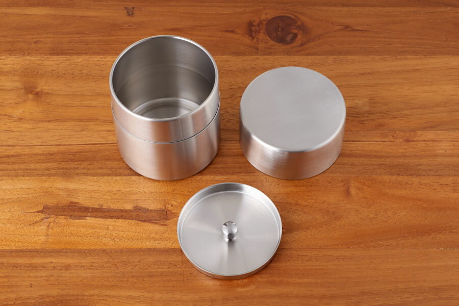 サイズ(目安) φ8.5×H9.5cm 容量(目安) 350cc 重量(目安) 239g 材質 ステンレス18/8(板厚:0.6mm) 使用区分 電子レンジ ×、食洗機 △(プロキッチンでは手洗いをおすすめしています)、直火 × 原産国 日本 ■ご確認ください ●ご使用の前に同梱している取扱説明書をよくお読みのうえ、正しく使用してください。 ※ラッピングをご希望の方はこちらをご覧ください。ブランシェ・アソシエ オリエンタルモダン 茶筒 350cc H9.5cm シンプルで美しい和モダンな茶筒 つや消し加工を施したシンプルな茶筒は ハンドメイドで生産された、made in Japan商品です。 手掛けたのは新潟県燕市の金属加工職人「富田勝一」さん。 ブランシェ・アソシエのステンレス急須・茶筒は 全て富田さんによって生みだされてきました。 丁寧に磨き上げられた滑らかな質感、愛着がわく独特の丸みなど、 金属で作られているということを忘れてしまうほど温かみを感じさせます。 2012年に他界されたのちは、 氏の金型などを引き取り意思を受け継ぐ工場によって作りつづけられています。 ステンレスの厚みは約0.6mmと重量感があり、 ほど良い重みに心地よさを感じていただけるはず。 切り口の処理も丁寧に施されており、手にしたときのあたりもソフトです。 毎日使う上で気になるのが、蓋の開け閉め。 こちらの茶筒は蓋の開閉がスムーズで、互いにぴたりとはまるようになっています。 ステンレス製の茶筒は遮光性や遮臭性が高く茶葉の保存に適した素材ですが、 さらにステンレスの中蓋付きなので湿気や匂いから茶葉をしっかり守ってくれます。 錆の心配もなく、汚れが気になったら隅々まで洗える気軽さも。 こちらの横広のサイズは蓋が大きく茶葉が取り出しやすくなっています。 笑顔でホッと一息入れる瞬間に側に置いてほしい逸品です。