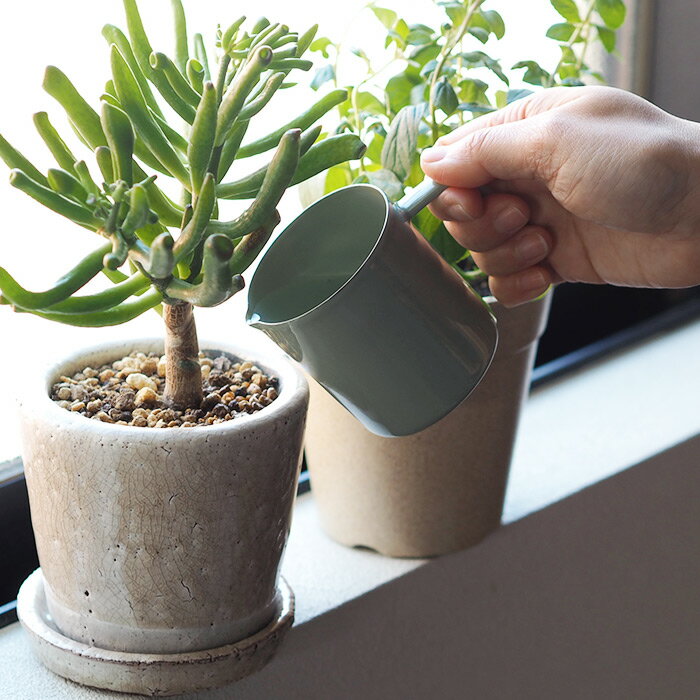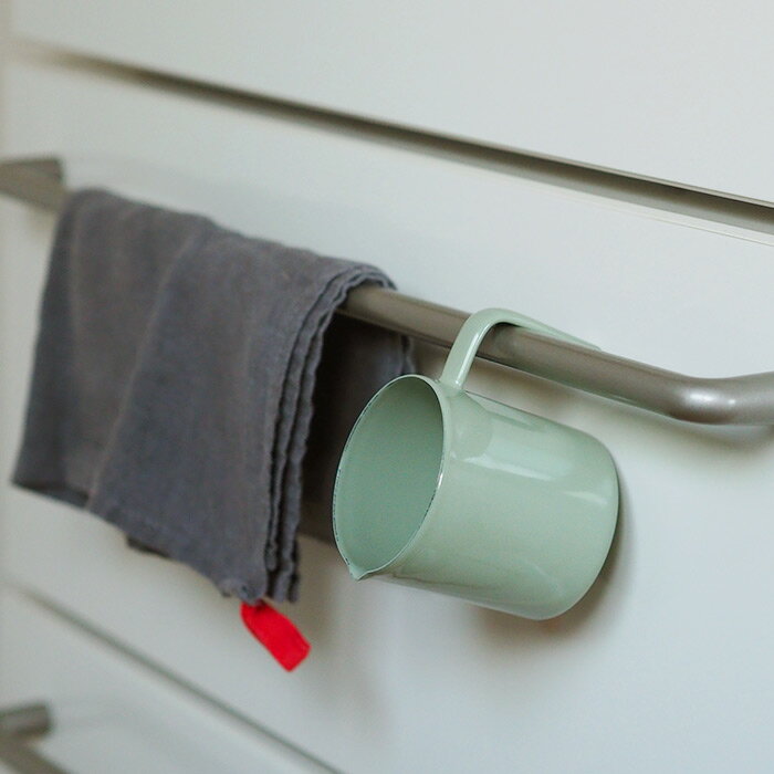 サイズ(目安) φ6×H6.8cm (取っ手含む最大幅9.5cm) 容量(目安) 180ml(一合) 重量(目安) 80g 材質 ホーロー用鋼板、琺瑯 使用区分 食洗機 ×、電子レンジ × 原産国 日本 ■ご確認ください ●琺瑯はガラス質ですので、強くぶつける等の衝撃は、破損の原因になりますので取り扱いにはご注意ください。 ●吊具で吊るした跡や、釉薬のムラ、ピンホールなどは、製造上やむなく起こるものですので、個性、風合いとしてご了承ください。 ●ご使用の前に同梱している取扱説明書をよくお読みのうえ、正しく使用してください。 ●お使いのPC・携帯等端末の環境により、実際の製品と画像の色味が若干異なる場合がございます。予めご了承ください。 ※ラッピングをご希望の方はこちらをご覧ください。大阪琺瑯 一合マグ グリーン お米の計量に琺瑯の取っ手付き一合マグ 一見するとお米の計量カップとは思えないほどおしゃれな、 琺瑯製の一合マグ(ライスカップ)が届きました。 この一合マグはアウトドアで使うメスディンなどを 手掛ける大阪琺瑯の製品で、 すり切りで一合(180ml)のお米を計量することができます。 お米の計量は料理用の計量カップで 代用したりする方もいらっしゃるかもしれませんが、 料理用とは容量が異なるので専用のものを使うのが 美味しいご飯を炊くポイントになります。 樹脂製の計量カップと異なり 静電気でお米がくっつくストレスもなし。 軽くて割れにくいからアウトドアでの炊飯にもおすすめです。 シュッとしたシルエットのカップに注ぎ口と 直線的なハンドルがついたシンプルなデザイン。 生活感のない佇まいに加えて、琺瑯の特性である塩分や酸に強いこと、 匂いや色移りがしにくく常に快適に使えること、 などからお米の計量だけでなく様々なシーンでお使いいただけます。 サラダにかけるドレッシングを入れたり、 ミルクピッチャーとしてリラックスタイムのシーンに 登場させても絵になります。 また、ドリンク用のカップや観葉植物の水やり、 小さめのキッチンツール立てにも良さそう。 小ぶりで軽いから収納性も高く、長めのハンドルは フックなどにさっとかけておくこともできます。 実際に使ってみたスタッフは 「ハンドルに指がしっかりかかり、 握りやすいから作業がしやすい」 と話していました。 とろりとした琺瑯独特の素材感と光沢の美しい一合マグは 「ホワイト」、「グリーン」、「ブラック」の3色からお選びください。