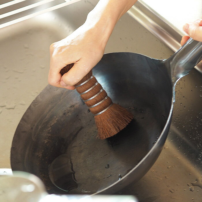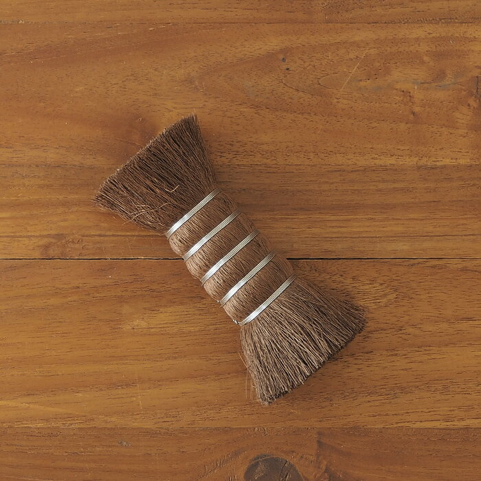 サイズ(目安) W4.5×H12.5(持ち手φ3.5) 重さ(目安) 52g 材質 棕櫚、針金 原産国 中国(自社工房) 備考 ※この商品は手作りのため、多少誤差は生じます。 ■ご確認ください ●自然素材を使用し、ひとつひとつ手編みしているため入荷時期により、仕上がりのサイズ・形の違い、ゆがみがあることがございます。 ●ご使用の前に水洗いをしてください。 ●キズのつきやすいものには使用しないでください。 ●ご使用後はよくすすぎ、水気をきり天日乾燥してください。 ●お使いのPC・携帯等端末の環境により、実際の製品と画像の色味が若干異なる場合がございます。予めご了承ください。 ※ラッピングをご希望の方はこちらをご覧ください。かごや シュロたわし 細長タイプ せいろやおひつのお手入れにしなやかなコシと柔らかさのシュロのたわし せいろやおひつなどのお手入れに使っていただきたい シュロ(棕櫚)のたわし。 ヤシ科の常緑高木“シュロ”の木の皮の繊維を束ねたたわしは しなやかなコシがあるのにとても柔らかいため、 テフロンのフライパンや食材に傷をつけずに洗えるほど ソフトな使い心地です。こちらは縦に長いカタチの棒たわしです。 持ち手部分が握りやすく、 手を汚さず使うことができるのもポイント。 洗いにくい湯飲みの底面などにも繊維が届くから 洗い残しのストレスがないですし、 ほうきのように払いながら掻き出して 洗うことができるため、すり鉢や茶こし、 スポンジが引っかかってしまうおろし金の汚れ落としにも 力を発揮してくれます。 他にも土鍋、鉄フライパン、食器洗い、シンクの汚れ落とし、 木のまな板、野菜を洗うときにも。 また変わったところではかごバッグのお手入れにも重宝します。 使い終わったらシャッシャッとたわしを振って水気を切ります。 ここでしっかりと水気を切っておけば、 作業台に直接置いても周りがびしょびしょになることがありません。 繊維に汚れが入り込んでしまった場合は、 雑菌の繁殖を防ぐためにもその都度取り除くようにしてください。 また、フライパンなどにこびりついた頑固な汚れは少々苦手ですので、 そのような汚れにはスコイや亀の子たわしをお試しください。調理道具や食材に傷をつけずに洗うことができる 自然素材のお掃除道具、棕櫚のたわし。 使っているうちに繊維が柔らかくなっていきますが、 両側それぞれで洗うことができるため 長くお使いいただくことができます。