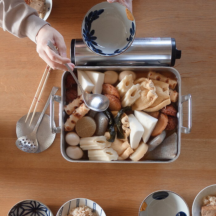 サイズ(目安) W30.7×D24.7cm×H6.5cm取っ手含む最大高さ11.0cm板厚:3.0mm 重量(目安) 1530g 容量(目安) 4.3L 材質 本体:アルミ 使用区分 ガス 〇 電子レンジ × 食洗機 × IH × 原産国 フランス ■ご確認ください ●食材をいれたまま保管しないでください。 ●アルミは水や空気にふれると黒っぽく変色する性質があります。ご使用前の注意点や黒ずみがでた場合のお手入れ方法はこちらをご覧ください。 ●お酢や重層などの酸やアルカリ性のもののご使用は極力お避けください。 ●ハンドルが金属のため熱くなります。キッチングローブや鍋つかみなどをご使用ください。 *ご使用前に* お米のとぎ汁(なるべく濃いとぎ汁)かたくさんの野菜の葉切れを水と一緒にお鍋に入れて煮立ててください。(ひと煮立ちする程度) *黒ずんでしまった場合は* 黒ずんだ部分にクレンザーなどの研磨剤の入った洗剤と少量の水をつけ、ナイロンスポンジ(固い面)・スチールタワシなどで磨いてください。あまり固いタワシを使うと傷になってしまうため、なるべく目の細かいタワシをご使用ください。 ※ラッピングをご希望の方はこちらをご覧ください。中尾アルミ製作所 アルミローストパン フランス製 希少な30cmサイズ、驚きの特別価格 業務用として作られた、 板厚3mmの重厚感のあるアルミローストパン。 なかでもこの30cmサイズは、 家庭用として“ちょうどいい”希少なサイズです。 実は、これより大きいサイズは 市場にも出回っていますが、 家庭のオーブンに対応する この30cmタイプはなかなかのレア。 今回、数量限定でご紹介できることになりました。 ローストパンという名前の通り、 オーブン調理はもちろん、 直火調理や、ボイルにも使えるマルチな一台。 広い有効面積を生かして、 ざく切りの根菜や青菜を切らずにそのまま調理できたり、 お魚も30cm以内であれば切らずにまるごと調理が可能。 使ってみると「大きすぎるかも?」と思ったサイズ感が 意外にもしっくりくるのは、すっきりとした本体設計と、 道具としての完成度の高さから。 アルミ鍋の特性として、酸や塩分に少し弱いため、 調理後は中身をすぐに移して洗うのが長く使うコツ。 火からおろした後も全体的に熱を帯びていますので、 鍋つかみなどをご使用くださいね。 調理時の火加減についても注意が必要です。 直火調理の基本は「中火~弱火」で、 強火での使用は変形などの原因になりますのでご注意を。 オーブンに入るかどうかが心配な方は、 事前に庫内の幅をご確認ください。 庫内の奥行がしっかりあれば、 家庭用オーブンにも意外とすっぽり収まりますよ。 この品質とスペックで、この価格。 まず出会えないレベルの価格設定です。 まさに今だけの特別価格。 数量も限られていますので、 気になった方はお早めにどうぞ。 ※本体に貼付されている商品シールは、 やや_がしにくい場合があります。 洗剤を含ませて湿らせたり、 ドライヤーの熱やお湯で温めて粘着を ゆるめるなどの方法をお試しいただくと、 剥がしやすくなります。 一度で剥がせない時は、 焦らずゆっくりご対応いただければ幸いです。