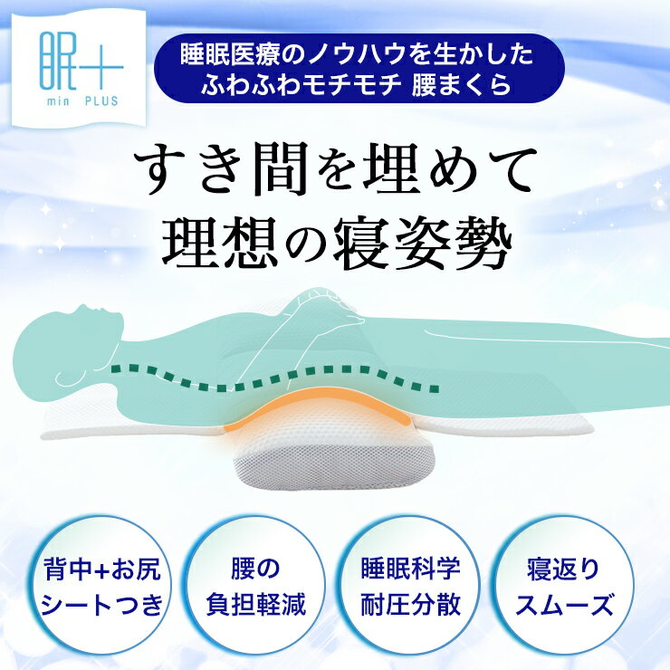 睡眠医療の作業療法士が勧める 腰を支える腰枕 眠+(ミンプラス) / 睡眠科学から生まれた自然な高低差で呼吸量をコントロールして寝入りを改善 腰が楽になる 枕 背中を支える 洗える枕 高さ調節可能 ズレない 折りたためる 眠気スッキリ枕 遠赤外線わた使用 ホワイト