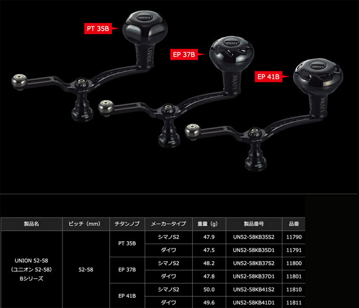リブレ ユニオン 52-58 PT35B Bシリーズ シマノS2用 #オールブラック 【送料無料】【お取り寄せ商品】【リールカスタムパーツ】【ハンドルノブ】LIVRE union