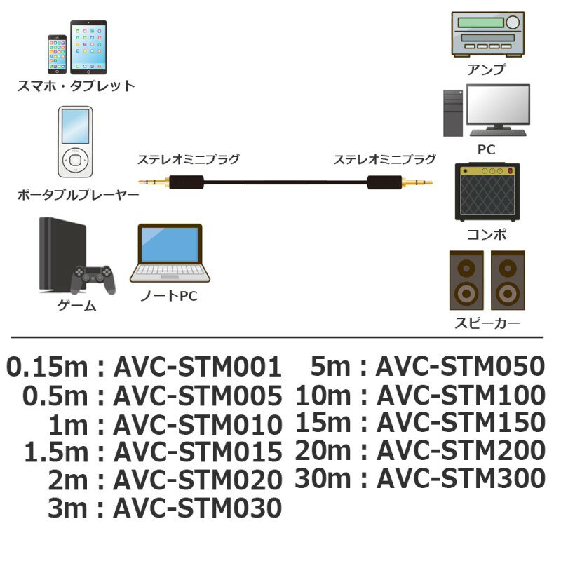 オーディオケーブル φ3.5mm 1m ステレオミニプラグ AUX 高音質対応 スマホ タブレット PC スピーカー用 ステレオケーブル コネクトケーブル 3Aカンパニー AVC-STM010 【メール便送料無料】