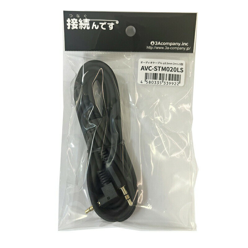 オーディオケーブル φ3.5mm 2m L-S型 ステレオミニプラグ AUX 高音質対応 スマホ タブレット PC スピーカー用 ステレオケーブル 3Aカンパニー AVC-STM020LS 【メール便送料無料】