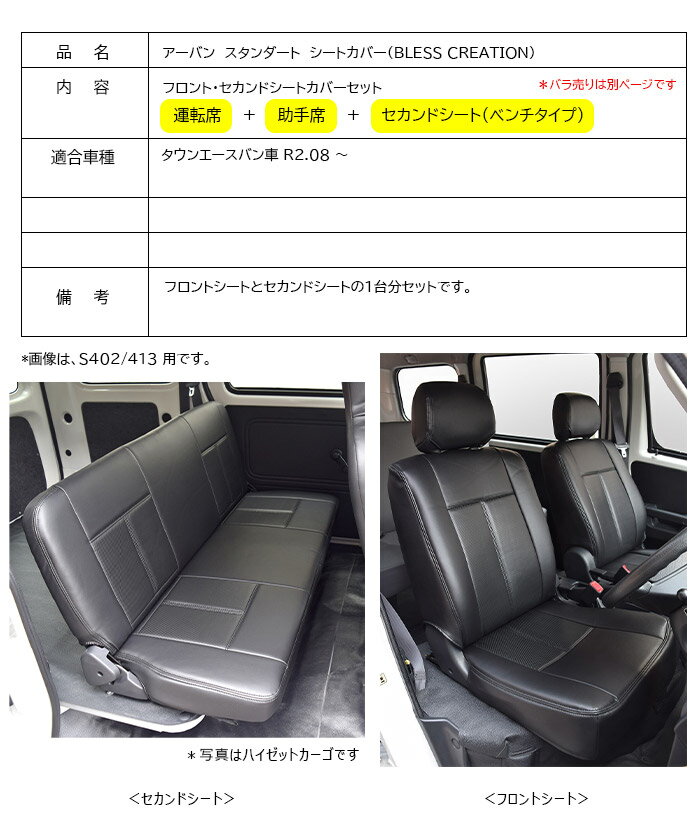 シートカバー タウンエース バン 後期【S403M S413M 2020年6月~】 フロントシート セカンドシート セット【1台分】 快適 BLESS CREATION