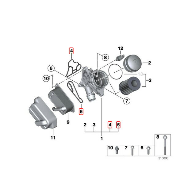 全国送料200円 BMW E60 E61 F07 F10 F11 523i 525i 528i 530i 530xi 535i xDrive ActiveHybrid5 オイルクーラー/オイルフィルターハウジング ガスケットセット 11428637820 11428637821