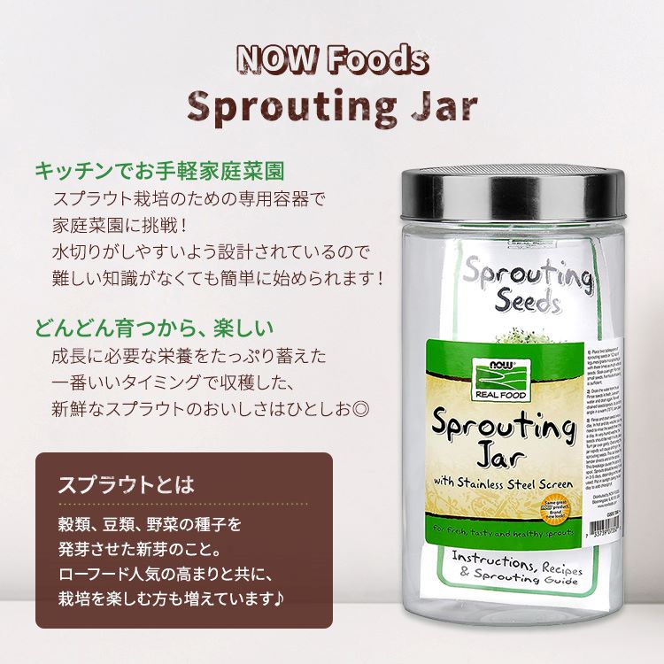 【最大10%OFFクーポン】ナウフーズ スプラウティング ジャー 1.9L (1 / 2 Gallon) NOW Foods Sprouting Jar