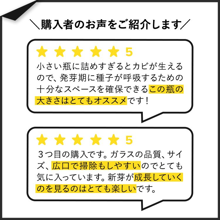 商品説明 ●人々がより健康的な生活を送れるようにするとの使命のもと、手頃な価格で高品質なナチュラル商品を提供する「NOW Foods」。扱う商品はサプリ、美容製品、エッセンシャルオイル、スポーツ用栄養食品、ペット向け栄養補助食品など、多岐にわたります。また、数々の賞を受賞しており、その品質の高さが伺えます。 ●スプラウトを栽培するための専用容器です。約2Lと大きめのガラス製の本体に、水切りしやすい網状のステンレス製の蓋がついています。 ●スプラウトとは、主に穀類、豆類、野菜の種子を発芽させた新芽のこと。ローフード人気の高まりと共に、自分で栽培する人も増えています♪ ●発芽直後は、成長するために必要な栄養をたっぷり蓄えている状態。一番いいタイミングで収穫した、新鮮なスプラウトのおいしさはひとしお◎ ●あっという間に育って収穫までできるので、初心者さんにもおすすめ♪【NOWのこだわり】 USDA認証オーガニック / Non-GMO (非遺伝子組換え) / グルテンフリー認証 / Intertek GMP (適正製造基準) 認証 / クルエルティフリー (動物実験なし) / インフォームドスポーツ認証 / コーシャ認証 / ハラール認証 / アスパルテームフリー / スクラロースフリー / アセスルファムカリウムフリー / 合成着色料不使用 / パラベンフリー / グルタミン酸ナトリウムフリー / 合成香料不使用 / ILAC MRA認定 / ISO認定 / cGMP (適正製造基準) 認証 ナウフーズの商品をもっと見る あると便利なキッチンタオル 新鮮サラダにおすすめのドレッシングはこちら 消費期限・使用期限の確認はこちら 内容量 1.9l (1 / 2 Gallon) 成分内容 詳細は画像をご確認ください ※詳しくはメーカーサイトをご覧ください。 使用方法 1. 大さじ2杯の種子、または1 / 2カップの豆類 / 穀類を、 種子の3倍の量の水を入れたスプラウトジャーに入れます。 一晩水に浸します。小さな種なら5時間ほど浸すだけで十分です。 2. ジャーの水を切ります。きれいなぬるま湯で種を洗い、もう一度水を切ります。 水気をよく切った種は、瓶を斜めにして、暖かく (21℃) 暗い場所に置いてください。 3. 1日に2回、種をすすいで水を切ります。 高温で乾燥した天候の場合は、1日に3回種をすすぐ必要があるかもしれません。 湿度が高い場合は、乾燥した場所に保管してください。 ジャーはゆっくりとひっくり返すようにしましょう。 ジャーを急にひっくり返すと、発芽した種子が動いてしまいます。 これにより柔らかい芽が折れ、スプラウトが枯れてしまう可能性があります。 このように芽が折れると、スプラウトが腐ってしまいます。 使用する種にもよりますが、3〜5日で食べごろになります。 最後の1日は日光に当てて 葉緑素を増やしましょう。 メーカー NOW Foods (ナウフーズ) ・メーカーによりデザイン、成分内容等に変更がある場合がございます。 ・製品ご購入前、ご使用前に必ずこちらの注意事項をご確認ください。 Sprouting Jar - 1 / 2 Gallon 生産国: アメリカ 区分: 日用品・雑貨 広告文責: ㈱ REAL MADE 050-3138-5220 配送元: CMG Premium Foods, Inc. ナウフーズ なうふーず 人気 にんき おすすめ お勧め オススメ 海外 かいがい 外国製 アメリカ 健康 けんこう へるしー ヘルシー 手軽 てがる 簡単 かんたん health すぷらうと コンブチャ もやし アルファルファ あるふぁるふぁ スプラウテッドシード 新芽 発芽 無農薬 自家栽培 家庭菜園 新鮮 ふれっしゅ ろーふーど 生野菜 じゃー ガラス瓶 がらす