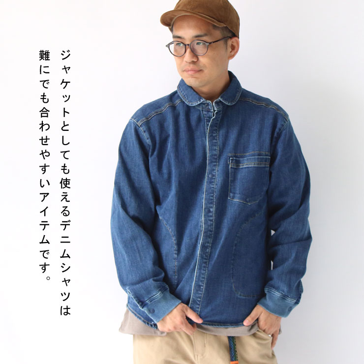 ネコポス可 タイプ ジムマスター シャツジャケット デニム 10oz gym master g221718 23年秋冬 アウター ジャケット シャツ 長袖 襟 ストレッチ 伸縮 アウトドア キャンプ アウター 秋 冬 秋冬 新作 Mサイズ Lサイズ XLサイズ LLサイズ ワンウォッシュ ディープブルー ブルー ギフト プレゼント クリスマス 現在開催中のキャンペーン一覧gym master(ジムマスター)の10ozストレッチデニム&カツラギシャツジャケット。 適度な厚みで春夏はライトアウター、秋冬は重ね着に使えるオールシーズン対応。 両サイドポケット付きで便利、スナップボタンで着脱しやすい仕様です。 【素材特性】 ・ストレッチデニム(ワンウォッシュ・ブルー・ディープブルー・ブラック) ・カツラギ素材(ブラウン・オリーブ・チャコール・ナチュラル) 【デザイン特徴】 ・袖口リブ仕様で快適に腕まくり可能。 ・ジャケットとしてもシャツとしても活躍する万能アイテム。 メンズ・レディースのユニセックス対応。カジュアルからきれいめ、アウトドアや旅行にもおすすめのシャツジャケットです。 SPEC&ATTENTION サイズ S:身幅53 肩幅44 着丈68 袖丈62 M:身幅56 肩幅47 着丈70.5 袖丈63 L:身幅59 肩幅50 着丈73 袖丈64 XL:身幅62 肩幅53 着丈75.5 袖丈65 素材 コットン98% ポリウレタン2% 洗濯表示