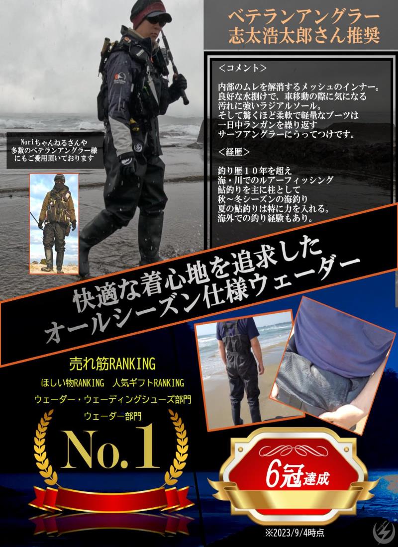 【インナーメッシュ搭載】内側にインナーメッシュを搭載し快適にオールシーズンお使いいただけます。【安全機能】胸上の紐と腰ベルトによりスマートなシルエットに加え、安全安心!H形のサスペンダーが調整可能で、後ろ側が伸縮性もあり、様々な体型にフィットします。【チャック付収納ポケット】物が落ちないようチャック付きポケットでスマホなど貴重品を濡らさず収納出来ます。【軽く優れた防水性】生地を新型ナイロンおよびPVCコーティングで仕上げ、耐水性が高く、さらにとても軽く動きやすく快適です。裏側もしっかり補強してあり安心♪海釣り、河川に立ち込んで釣りに欠かせないアイテムです。農作業、漁産業、水作業、除雪作業、災害時も広くご利用いただけます。【厚めの滑りにくいラジアルソール】耐久性のある厚めのPVCラジアルブーツは、滑りにくく様々な場面でご使用いただけます。脱ぎやすいキックオフも登載!また、長靴と生地の繋ぎ目もしっかり溶接し浸水対策も安心です。